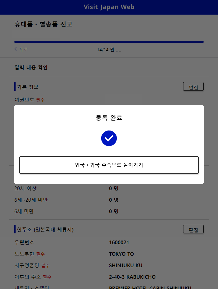 [입국·귀국 수속으로 돌아가기] 버튼을 눌러 줍니다.