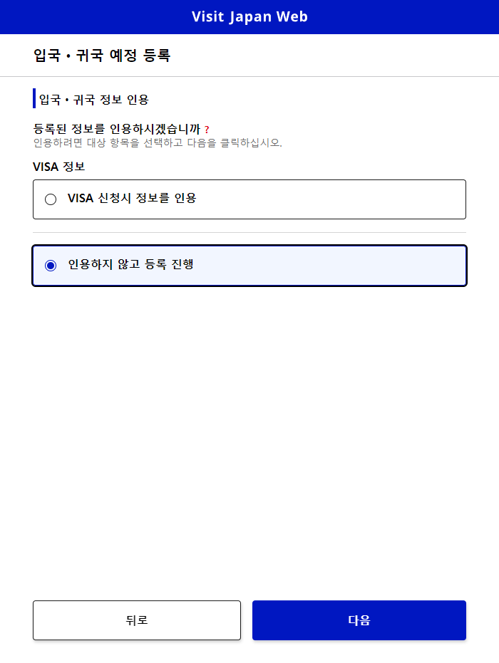 VISA가 없으니 [인용하지 않고 등록 진행]을 선택하고 [다음] 버튼을 눌러 줍니다.