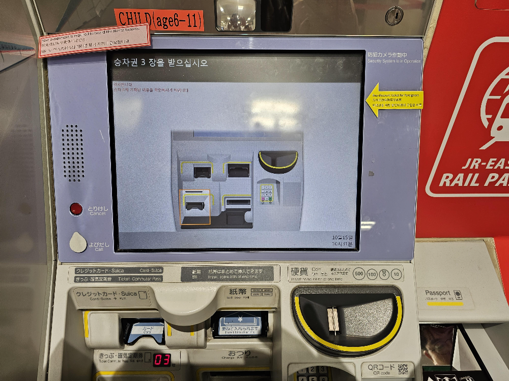 저는 이 기기에 대한 존재를 몰라서, 근처 역무원에게 승차권을 보여주며 좌석이 어디에 표시되어 있는 것인지를 물었고, 역무원의 도움을 받아 이 기기를 이용해서 좌석을 지정할 수 있었습니다.