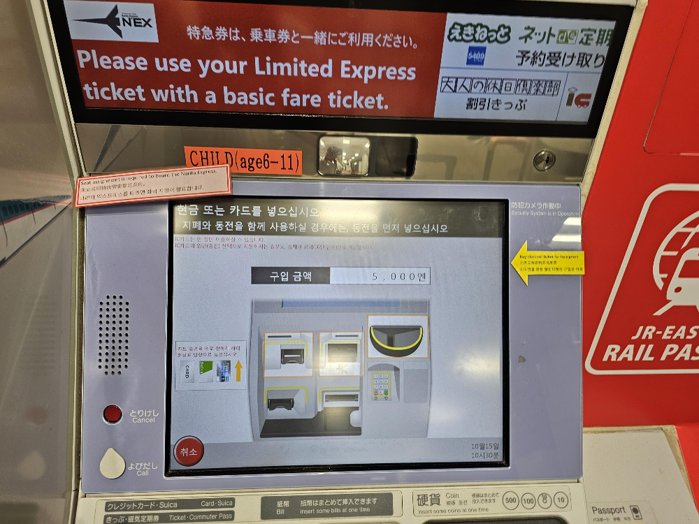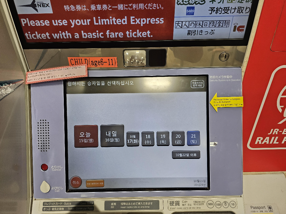 저는 지금 바로 나리타 익스프레스에 탑승해서 신주쿠로 이동해야 하기 때문에 '오늘'을 눌렀습니다.