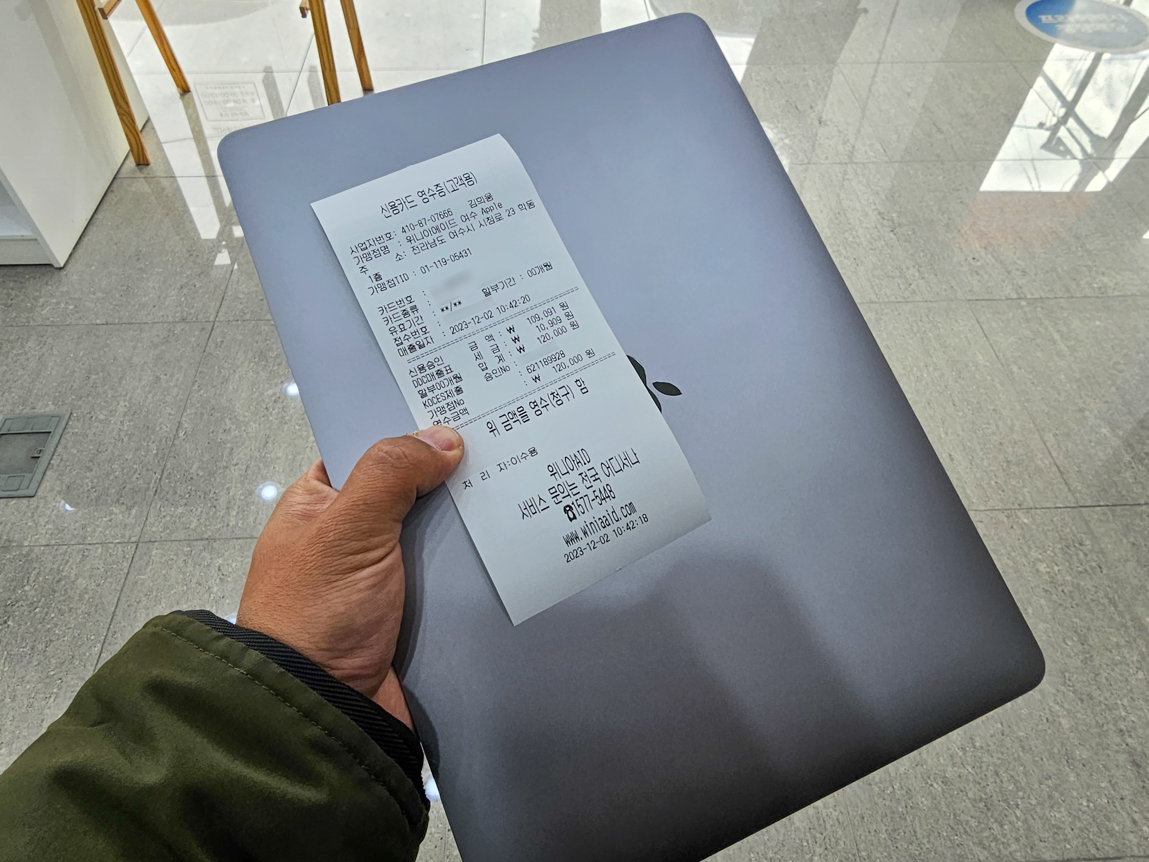 맥북프로 탑케이스 교체 및 테스트까지 끝났으니 제품을 수령하러 오라는 연락을 받았으나 이 날은 근무라서 도저히 시간이 허락되지 않아서 다음날인 12월 2일 제품을 찾으러 가겠다고 답변 드렸습니다.