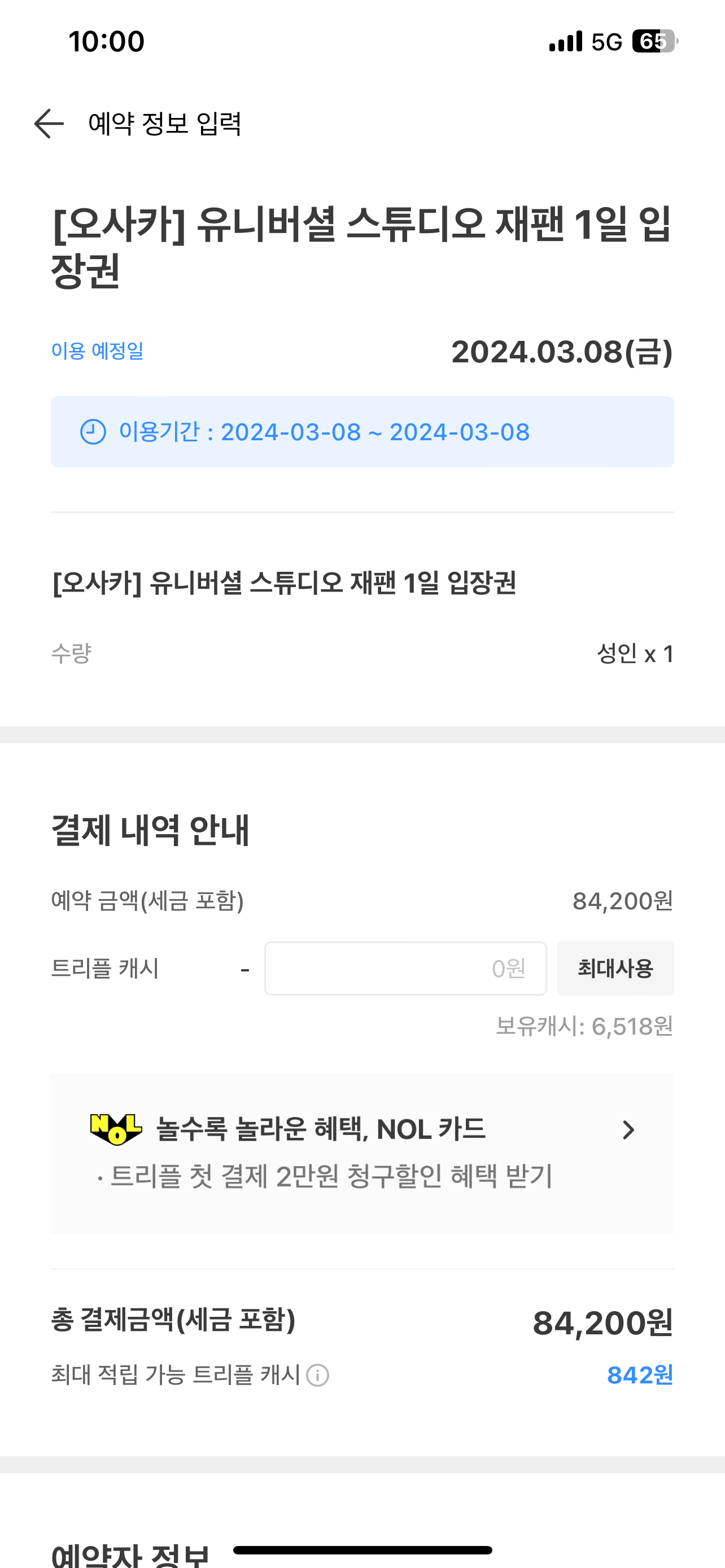 트리플에 6,518원의 캐시가 남아 있어서 그 것을 사용하기 위해서 트리플에서 유니버셜 스튜디오 재팬 입장권을 구입했습니다.