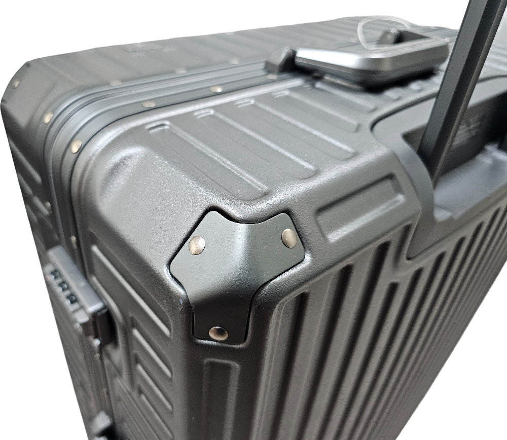 캐리어는 100% 폴리카보네이트 소재를 사용했고, 트롤리는 알루미늄 합금, 바퀴는 PP로 이뤄졌습니다.