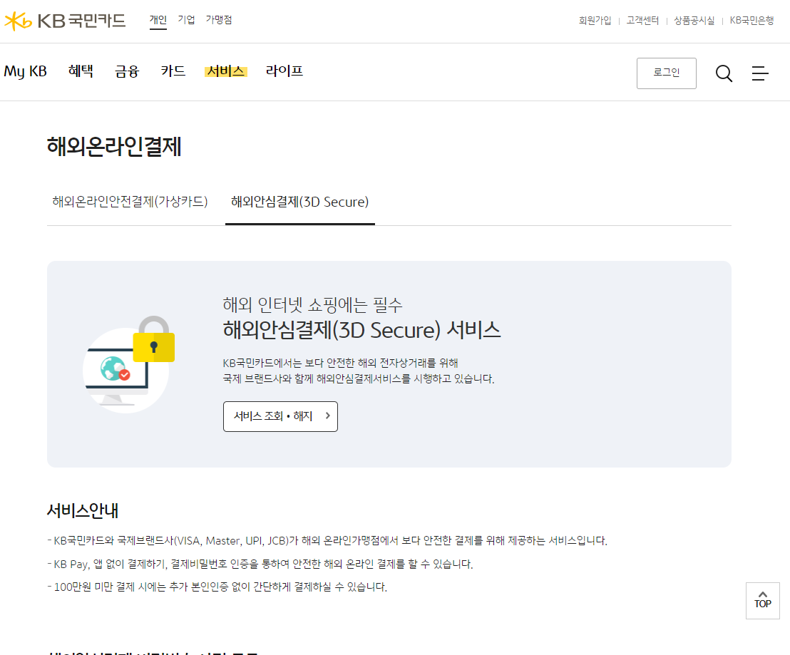 해외 결제가 안 될 때, 3D Secure 해결 방법 [국민카드-VISA]