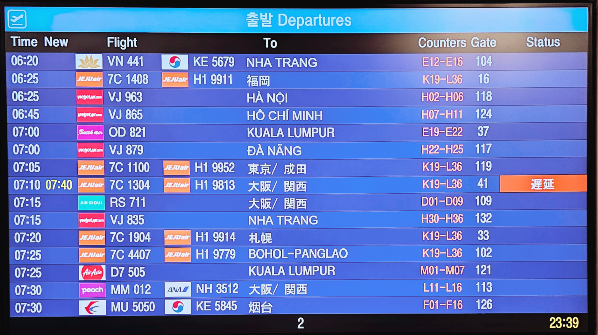 다음으로 부산 김해국제공항의 경우, 공항 인근에 위치한 신어산과 돗대산 때문에 항공기 이착륙이 어려운 편이고, 때문에 결항률도 높다는 점이 발목을 잡았습니다. 실제로 제가 지난 2019년 도쿄 나리타국제공항에서 부산 김해국제공항으로 돌아 올 때, 날씨로 인하여 항공편이 결항되어 다음 날 출국한 일이 있었습니다.