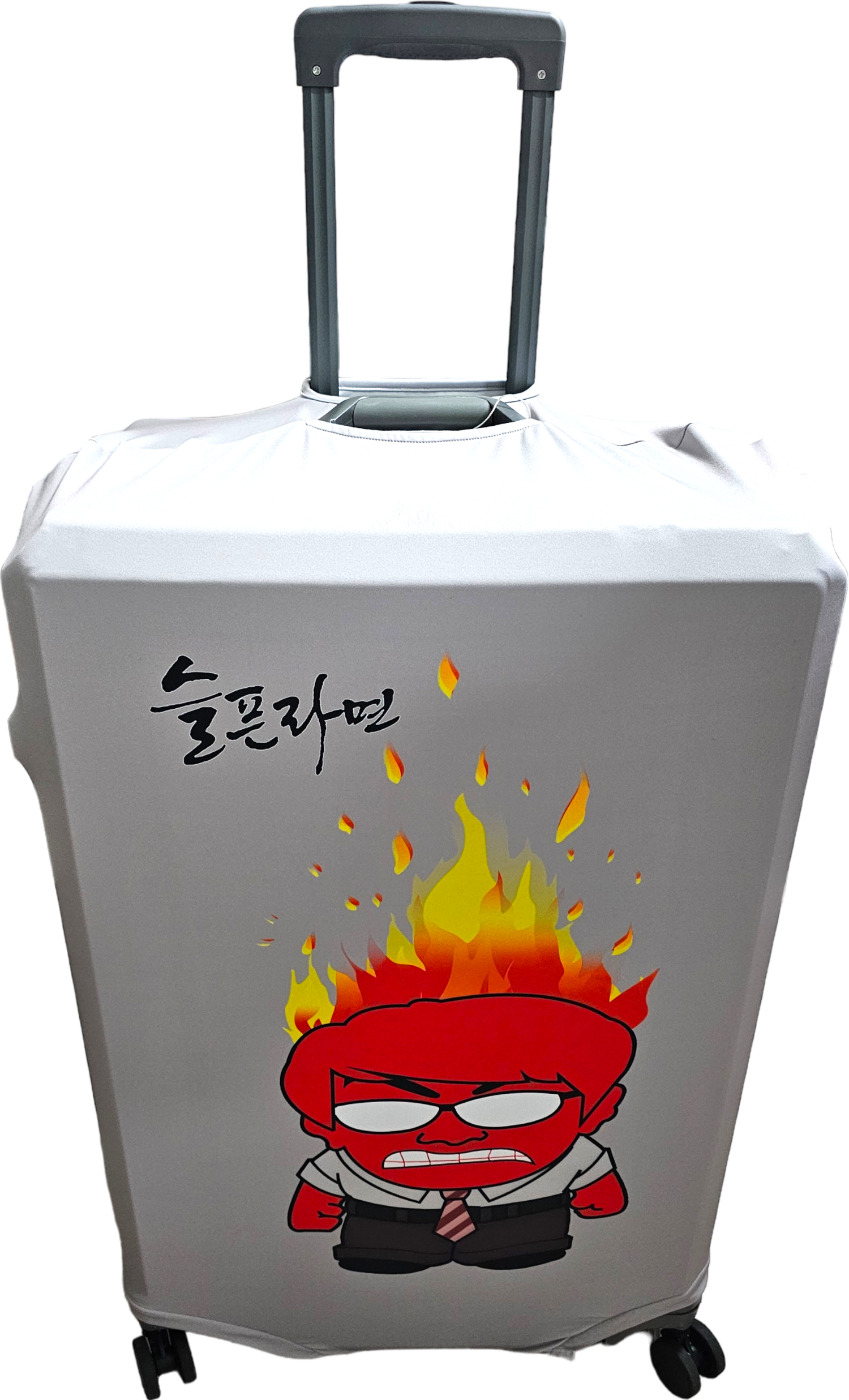전면부에 슬픈라면이라는 제 블로그 닉네임도 넣어 뒀고, 시뻘건 버럭라면 캐릭터가 있으니 멀리서 봐도 제 캐리어를 쉽게 찾을 수 있을 것 같습니다.