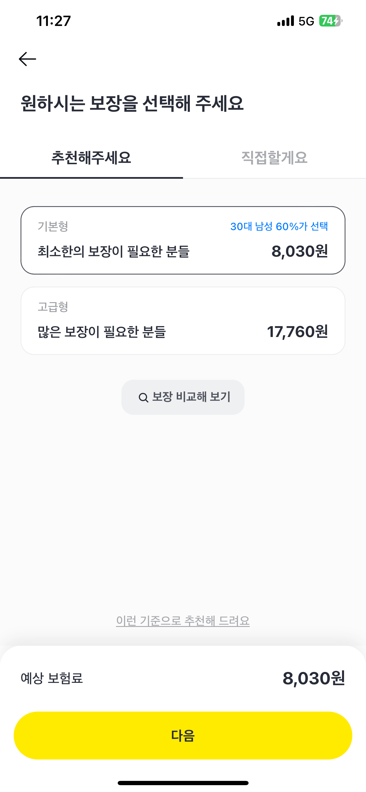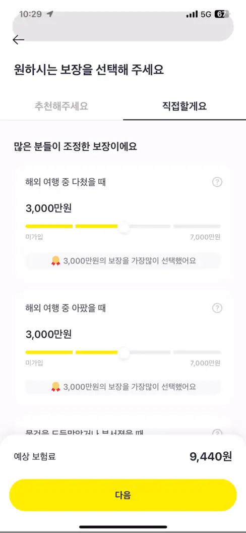자신의 스타일대로 보장 사항을 선택하고 싶다면 [직접할게요]를 선택해주면 됩니다.