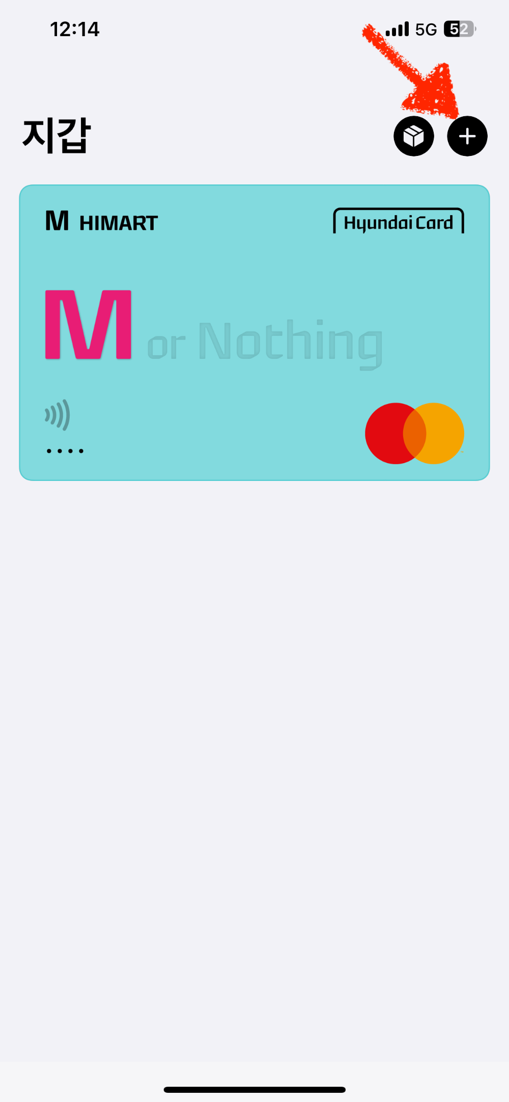 일본 교통카드 추가를 위해서 상단의 [+] 버튼을 눌러 줍니다.