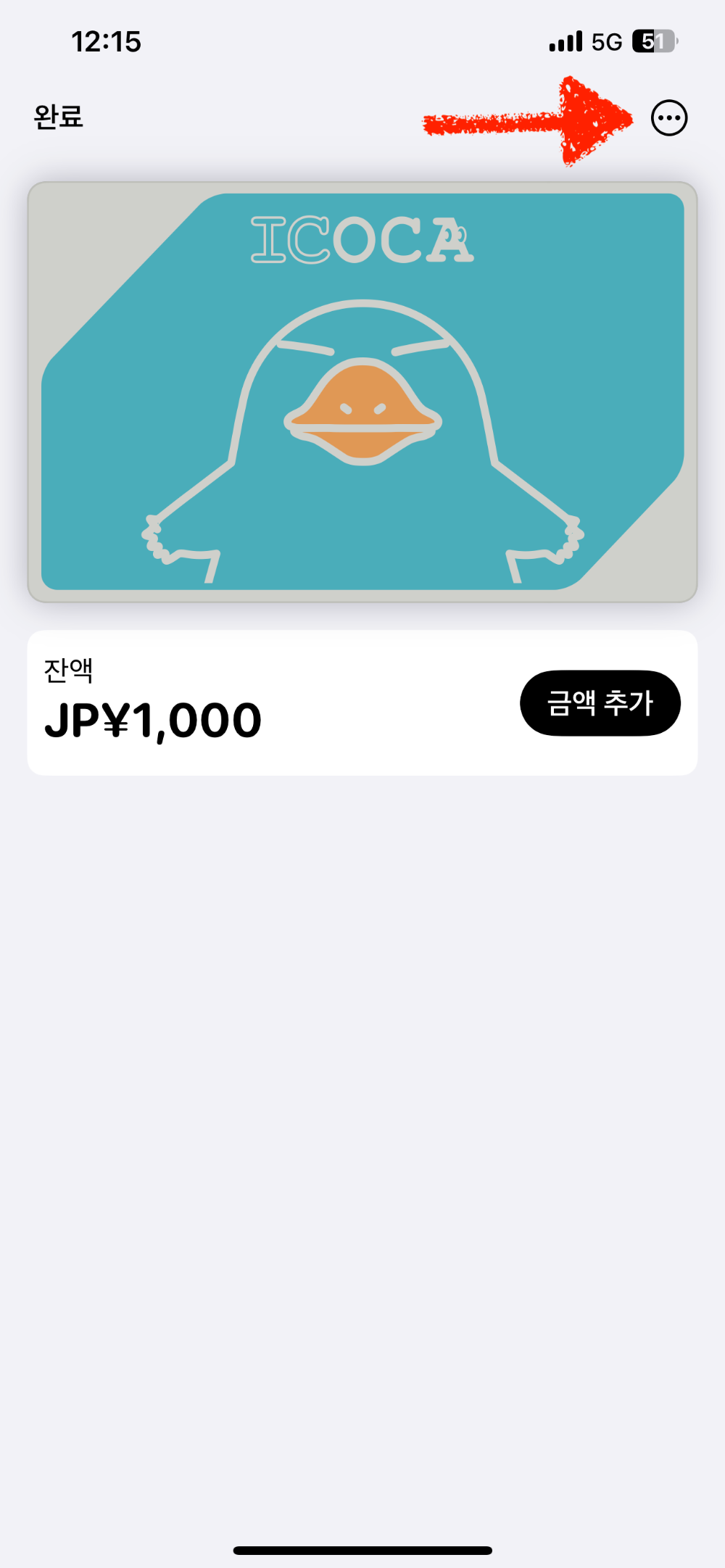 이코카 교통카드를 선택한 뒤, 상단의 […]를 선택하고, [카드 세부사항]을 선택해줍니다.