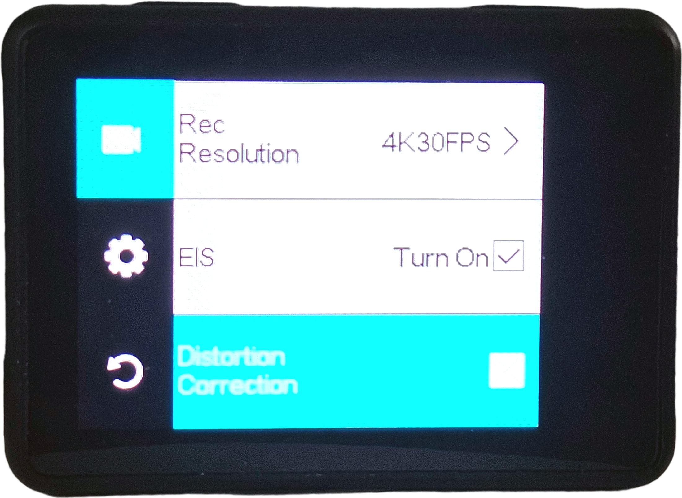 EIS와 왜곡 보정은 동시 적용이 불가능하며, [ 4K : 30fps, 2.7K : 30fps, 1080P : 60fps / 30fps ] 해상도에서만 적용이 가능합니다.