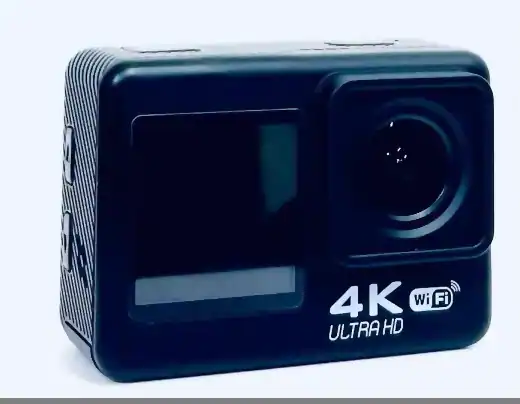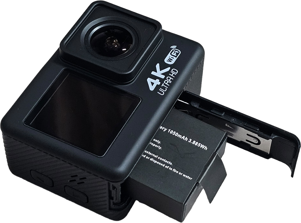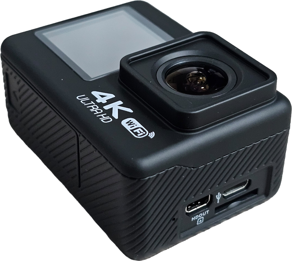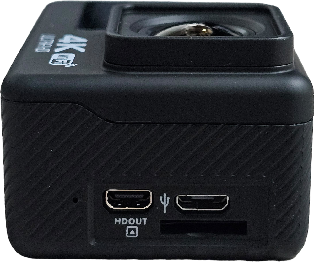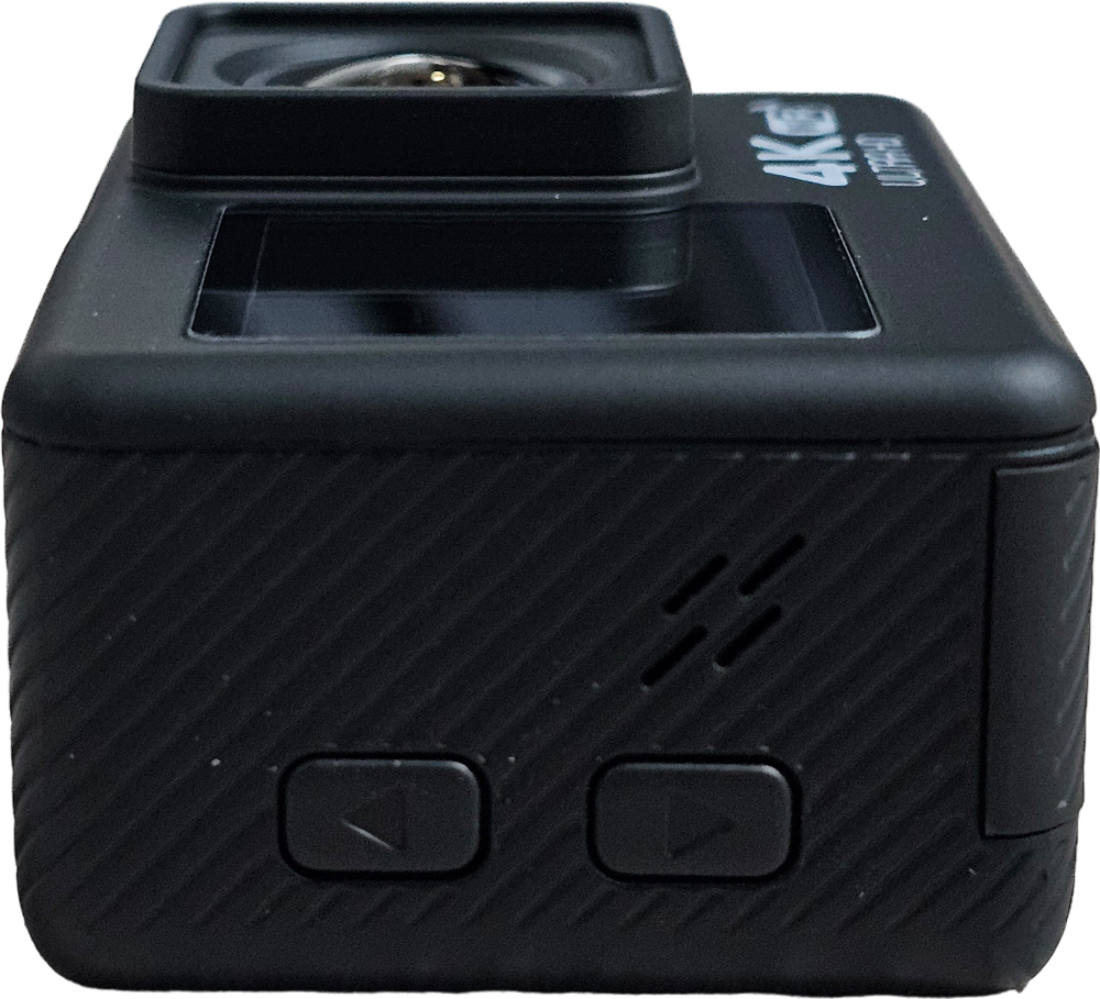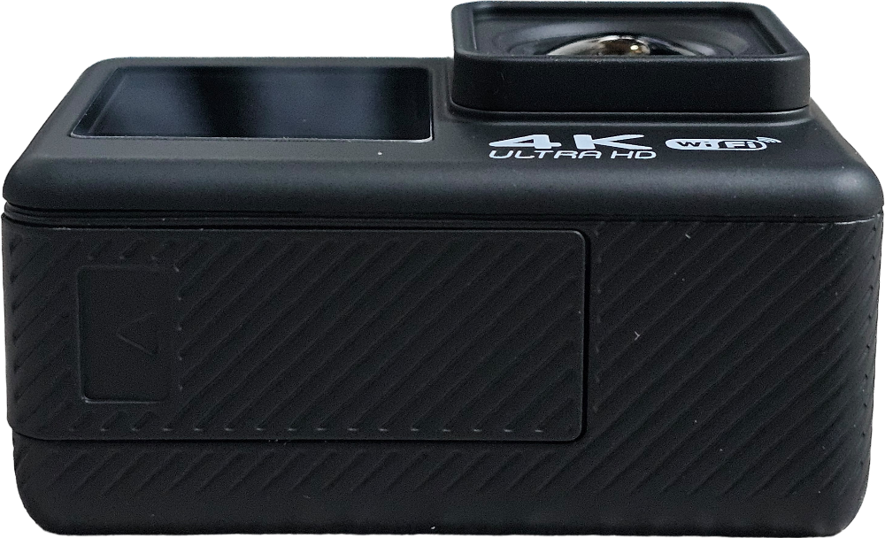 전면부에는 4K ULTRA HD, WiFi 로고가 프린트되어 있고, 돌출된 카메라 렌즈 옆으로 1.3"의 디스플레이가 장착되어 있습니다. 전면부 디스플레이는 터치가 불가능합니다.