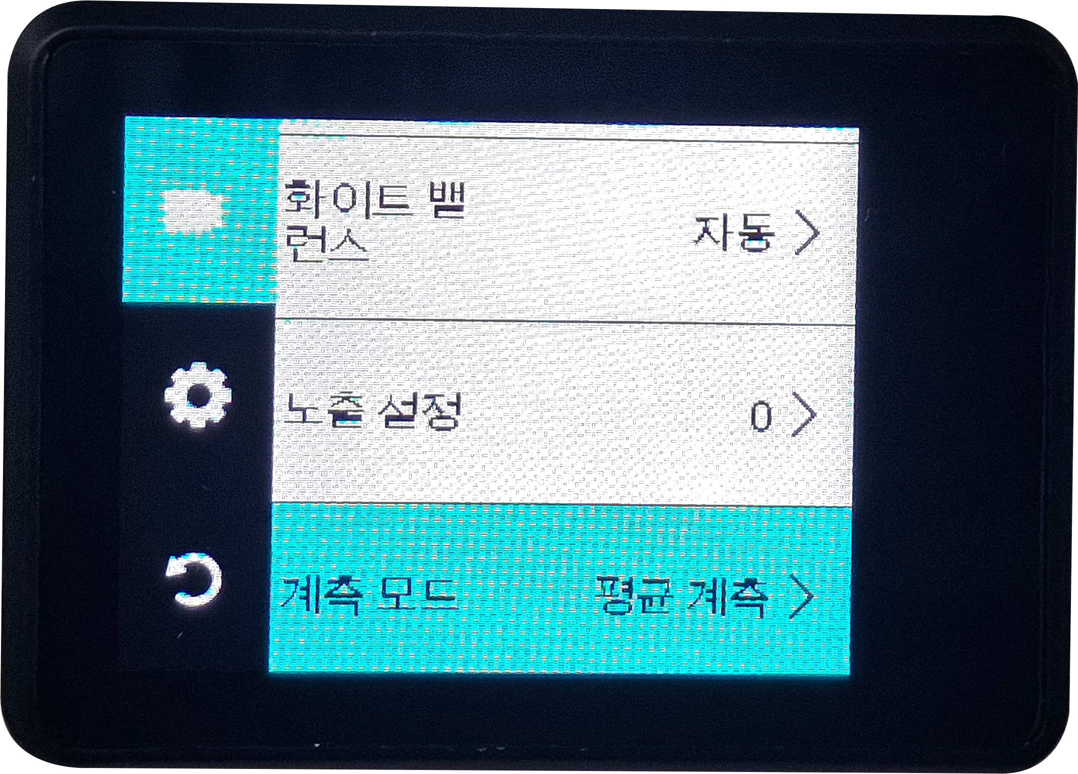 ▲ 버튼을 길게 누르고 있으면 WiFi를 켜고 끌 수 있으며, ▼ 버튼을 길게 누르면 디스플레이 화면을 전면/후면으로 전환할 수 있습니다.
