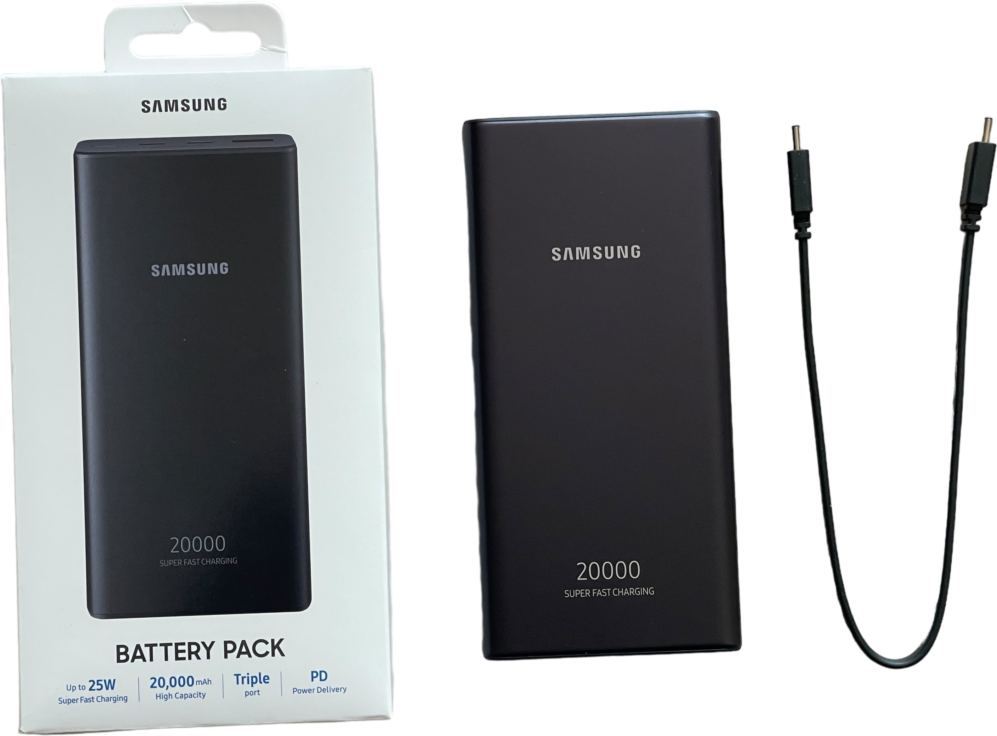저는 가지고 다니는 전자기기가 많아서 삼성전자의 20,000mAh 대용량 보조배터리 EB-P5300를 2개 준비했습니다.