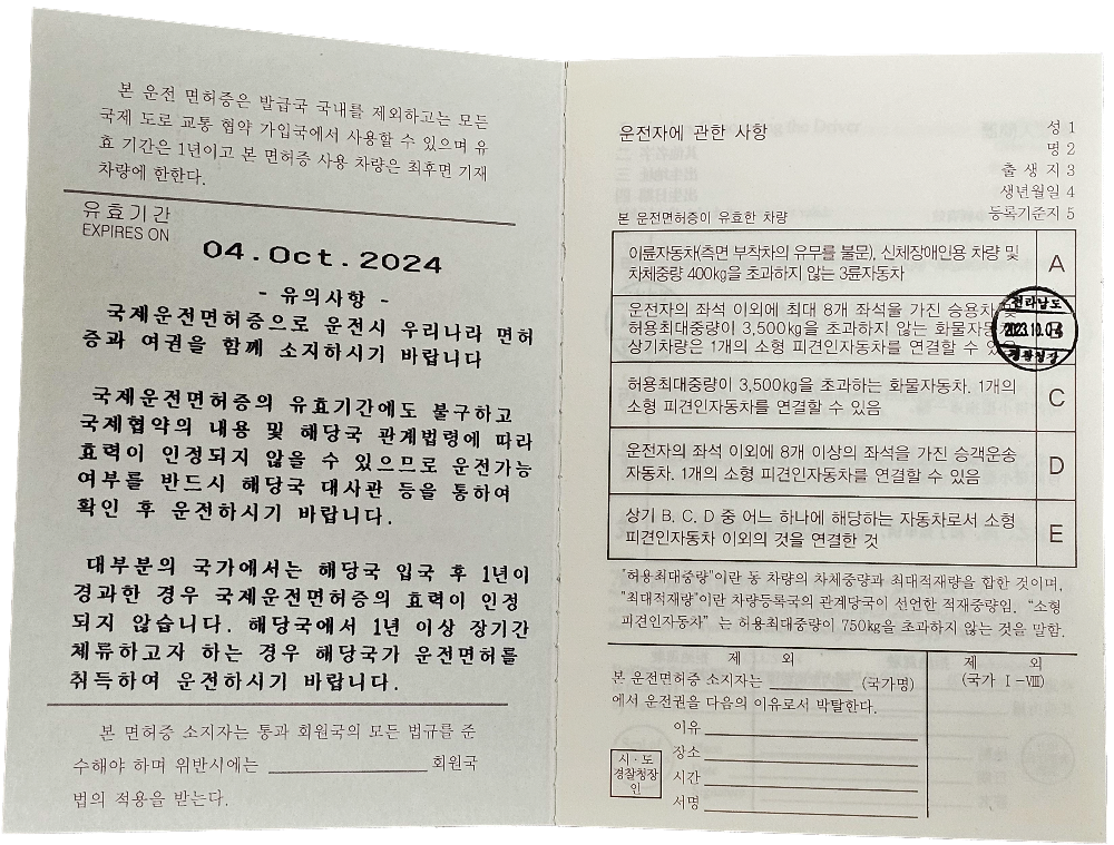 일본에서는 국제운전면허증을 필요로 하기 때문에 저는 국제운전면허증과 함께 혹시 모를 상황에 대비하여 국내 운전면허증을 함께 준비했습니다.