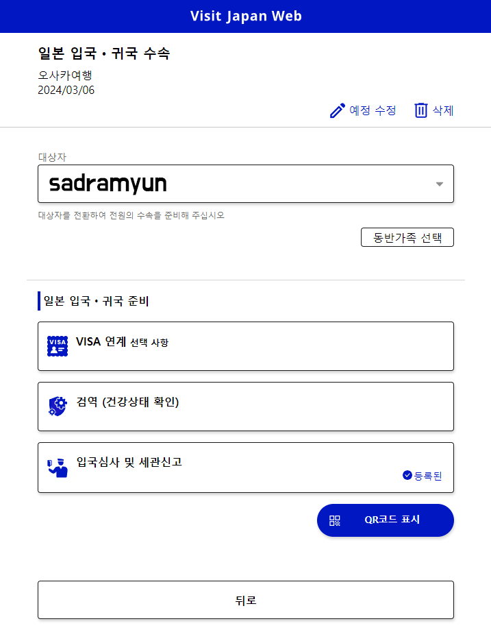 지난 도쿄 여행 때에는 2개의 QR코드가 생성되어서 이를 각 각 보여줘야 했는데, 지금은 1개의 통합 QR코드만 생성되는 것으로 변경되었습니다. 이를 미리 스마트폰에 저장!