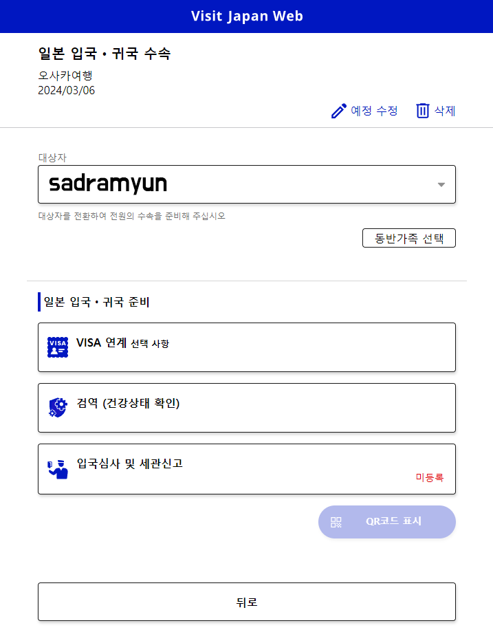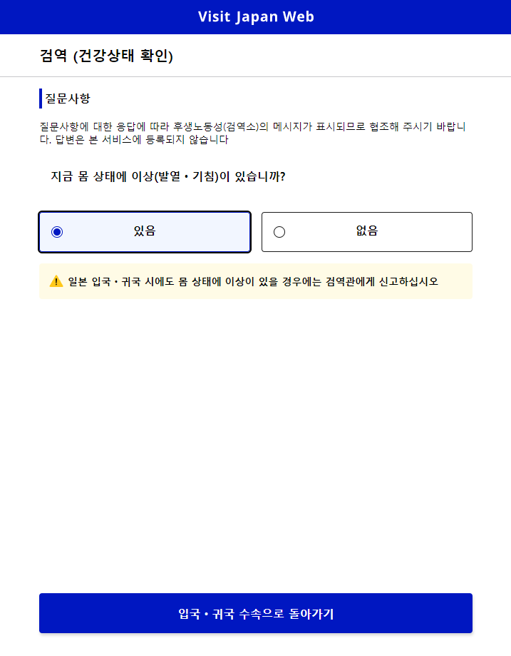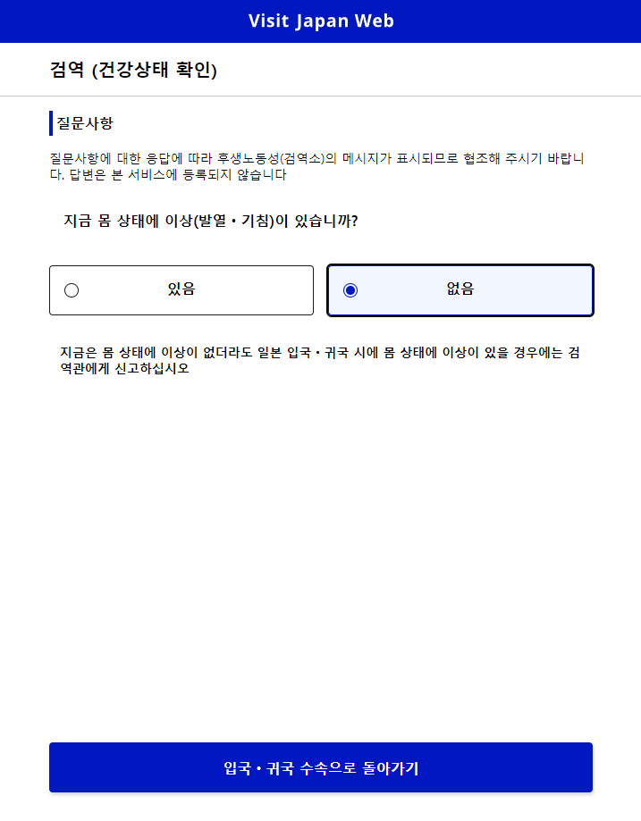 비짓재팬웹(Visit Japan Web) 입국심사서 작성
