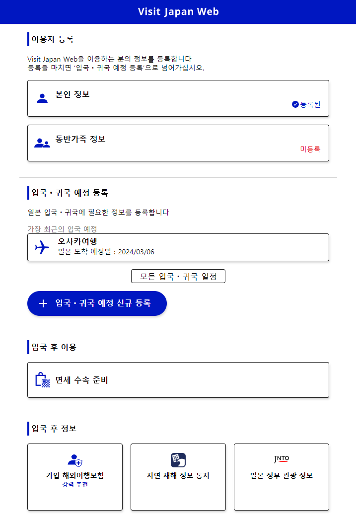 일본 여행 준비, 비짓재팬웹(Visit Japan Web) 등록하기