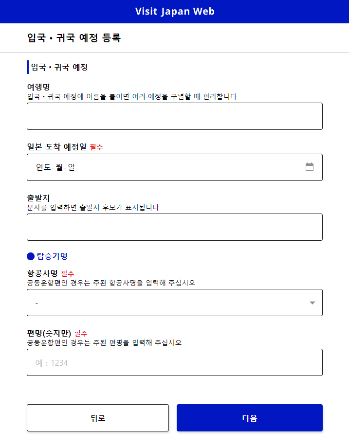 비짓재팬웹(Visit Japan Web) 입국심사서 작성