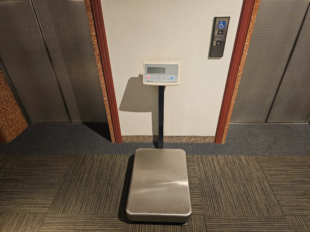 각 층별로 엘리베티어 앞에는 이렇게 저울이 놓여져 있고, 1층 로비에도 저울이 있어서 수시로 캐리어의 무게를 확인하며 짐을 정리할 수 있어서 좋았습니다.