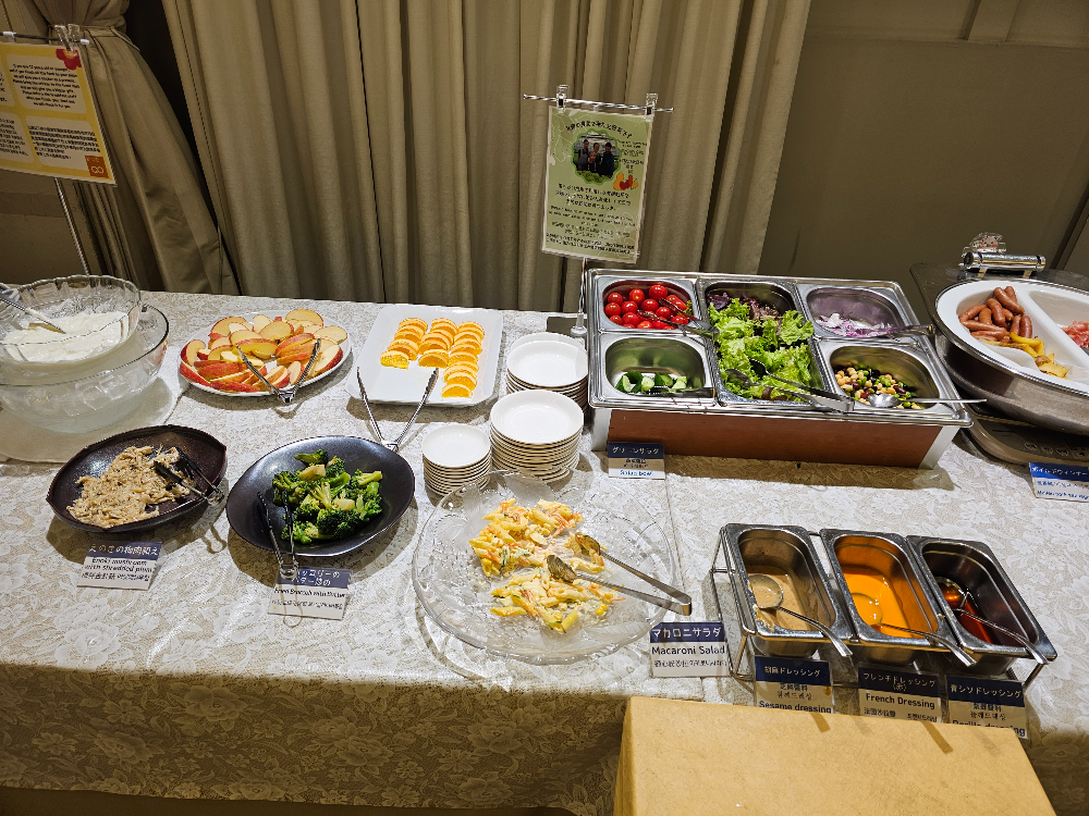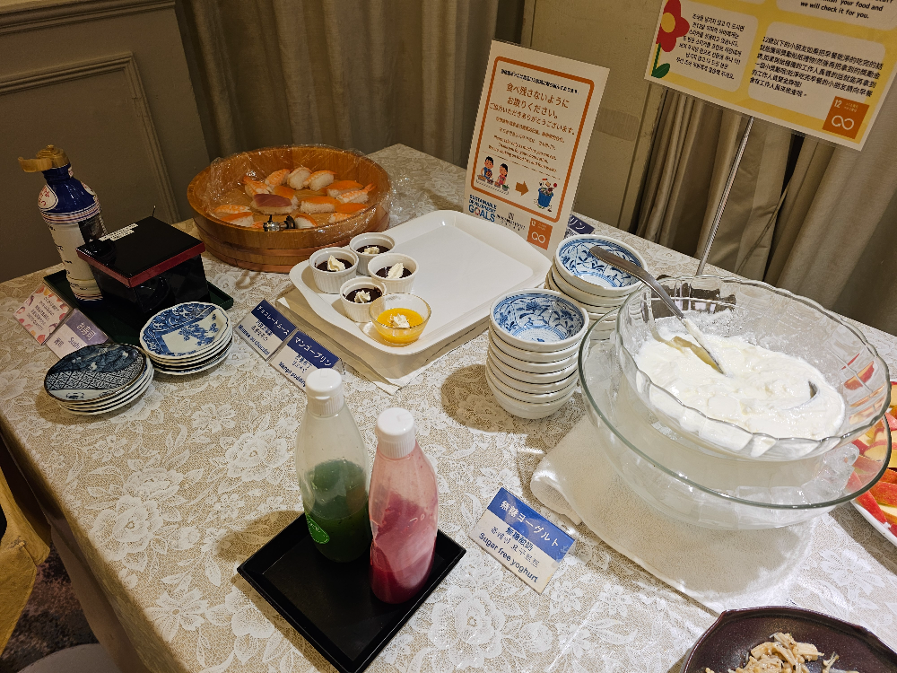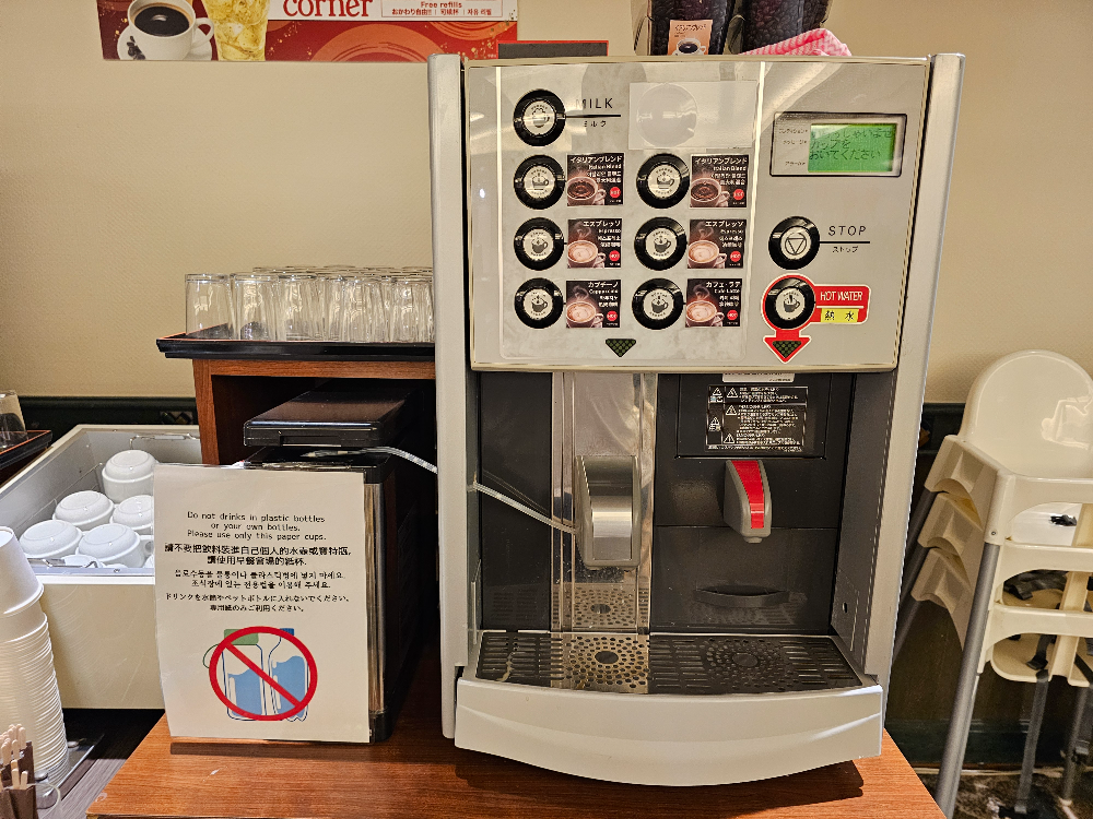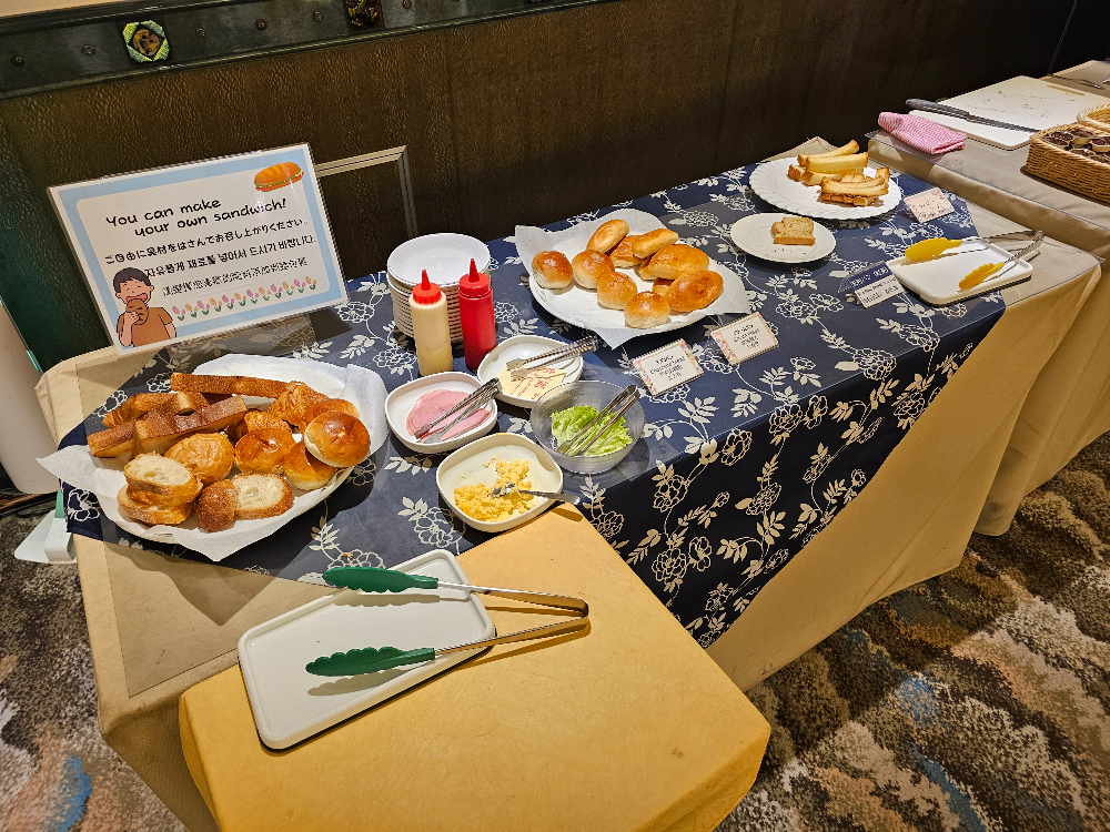 조식은 매일 아침 7시부터 9시 30분까지 지하 1층의 식당에서 먹을 수 있고, 12세까지는 조식 무료, 13세부터는 1인 1,500엔의 이용료가 부가됩니다.