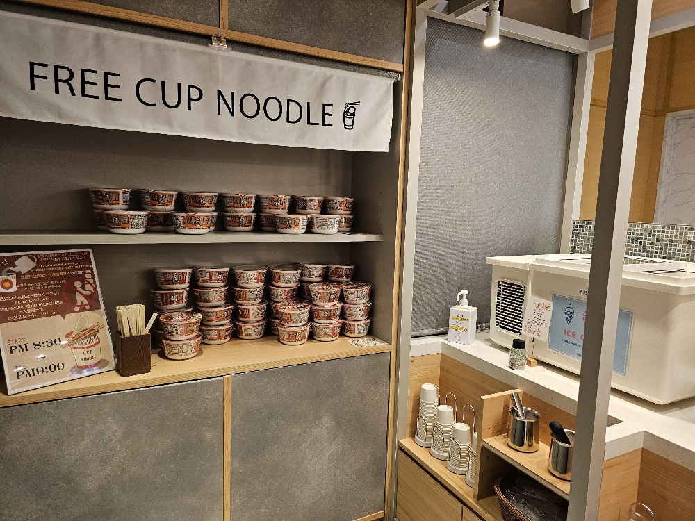20시 30분부터 21시까지는 컵라면까지 무료로 제공하는 것도 이 호텔의 특징이라 할 수 있는데, 저는 매일 관광에 집중하다보니 생각보다는 이 서비스들을 많이 이용하지 못 했습니다.