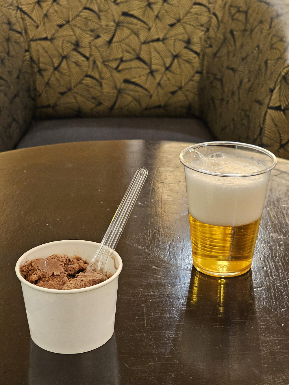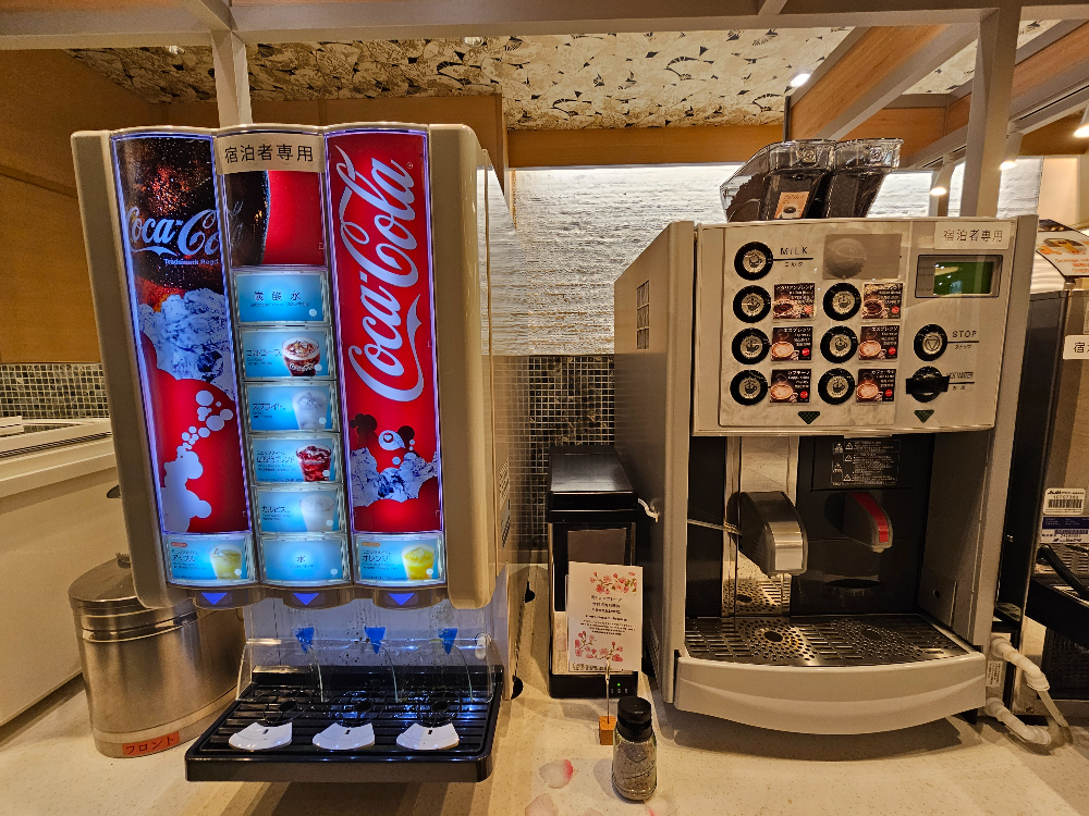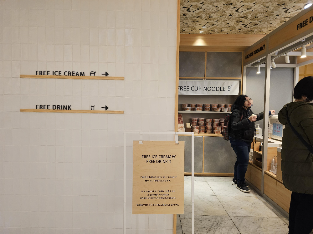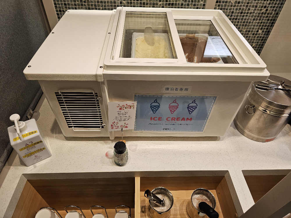 매일 15시부터 21시까지 프론트 데스크 옆에 마련된 작은 공간에서 아이스크림과 음료수, 맥주와 각 종 일본 술, 칵테일 등을 무료로 제공합니다.