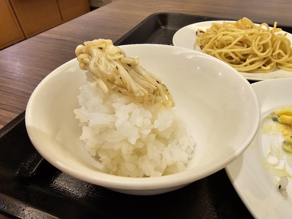 삼각 김밥 다 먹고도 짠 맛이 강해서 밥을 추가로 덜어와서 남은 버섯 매실 무침을 처리했습니다.