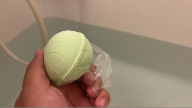 쇼핑하면서 구입한 슈퍼마리오 요시 배쓰볼을 욕조에 넣고, 따뜻한 물에 몸을 담궈 피로를 풀어 줬습니다.