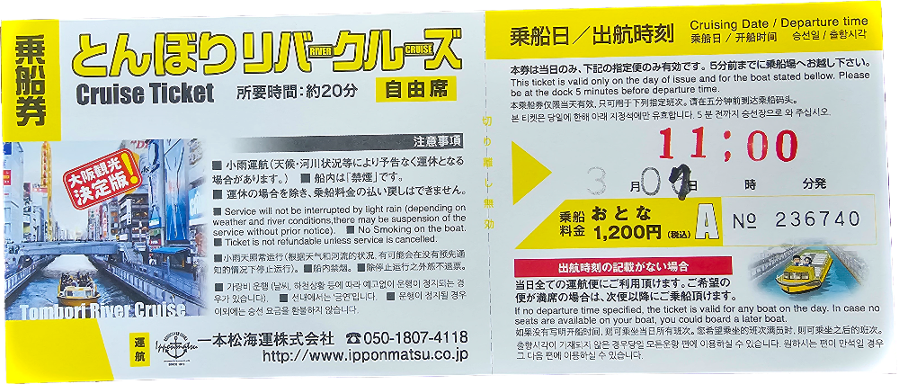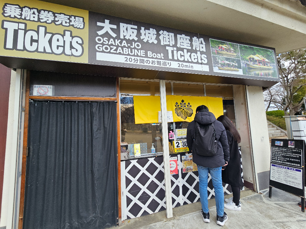 오사카성을 제대로 돌아보지 않으면 오사카 여행을 하지 않은 것 같다... 뭐 이런 생각이 들어서 2시 30분 승선권을 받아왔습니다. 그나마 이 것도 참 운이 좋았던 게, 제가 마지막 손님이었고 제가 발권하고 나니 바로 2시 45분으로 바뀌더라고요.