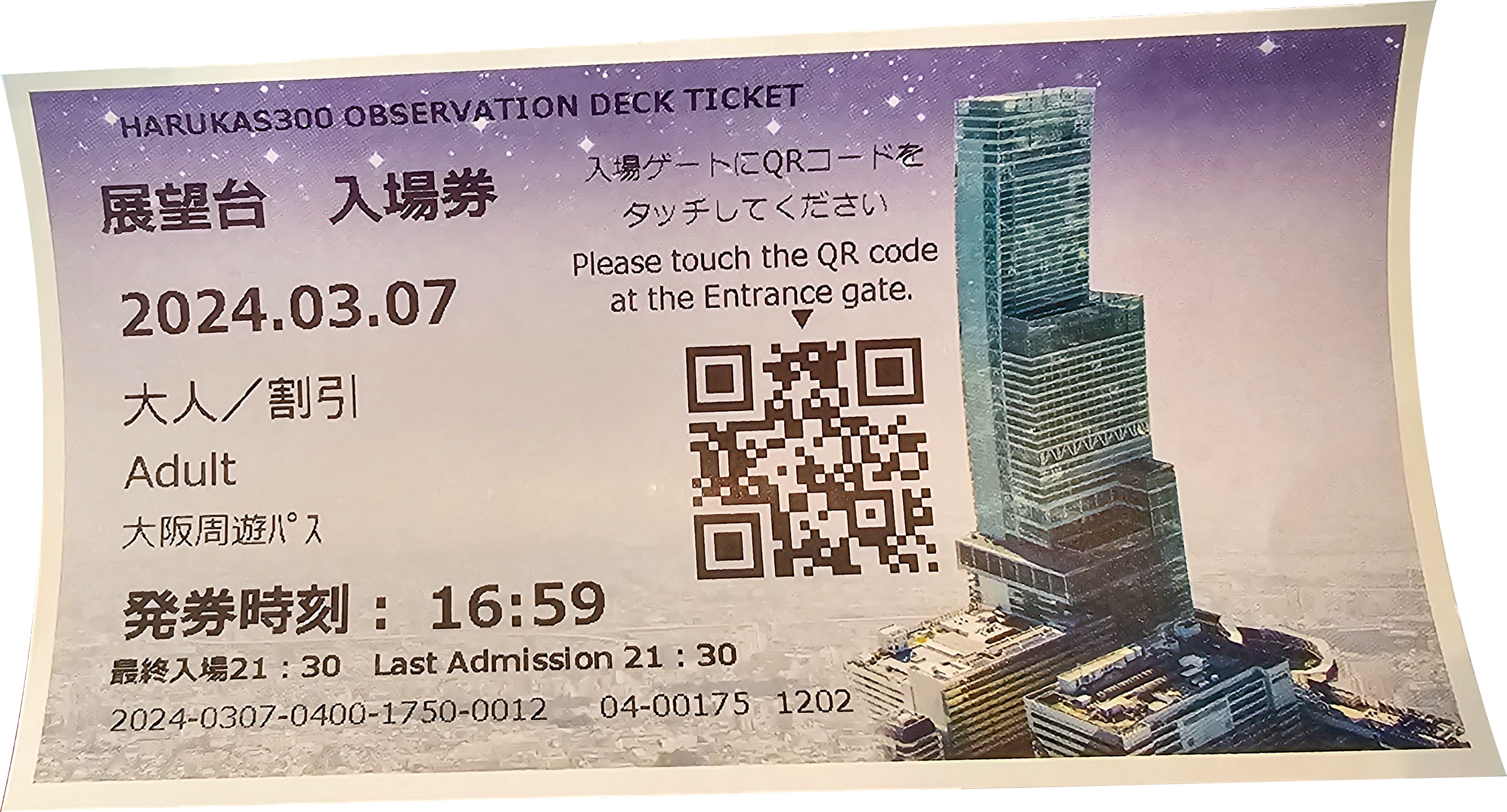 아베노 하루카스에는 오사카에서 가장 높은 전망대 '하루카스 300'이 있는데, 오사카 주유패스로 무료 입장을 할 수는 없지만, 오사카 주유패스를 제시할 경우 입장료 10% 할인 혜택을 받을 수 있습니다.