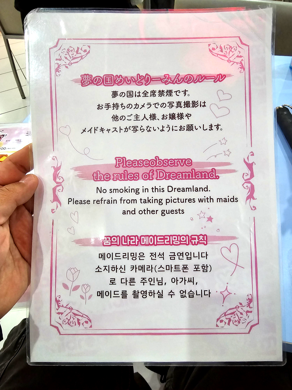 저는 일본어도, 영어도 잘 모르지만 메이드카페 방문 영상을 많이 봤어서 그런지 크게 소통에 어려움이 느껴지거나 하지는 않았습니다.
