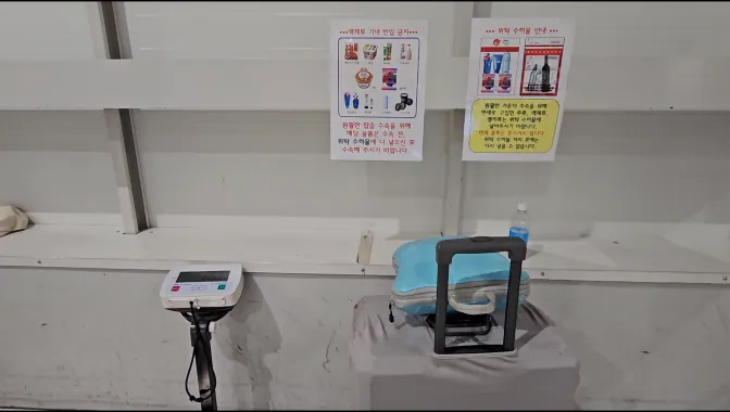 9시 4분. 사람들로 붐비기 전에 수하물 무게를 다시 한번 확인하고, 출국 체크인을 진행합니다.