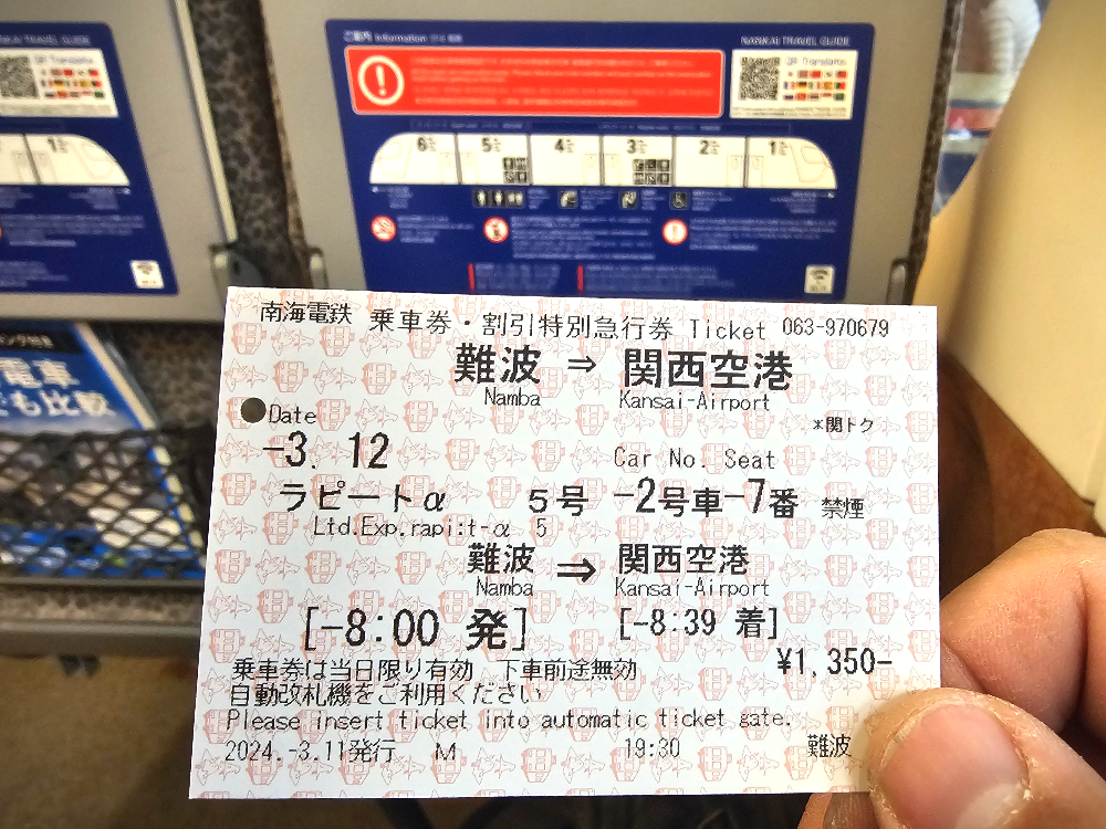 간사이 국제공항에서 난바역으로 향할 때에는 수하물이 늦게 나온다거나 입국 심사에 뭔가 문제가 생기거나 하는 등의 이유로 탑승 시간 맞추기가 힘들 것 같아서 라피트 예약을 하지 않았었는데, 출국을 할 때에는 제가 때맞춰 역에 도착하기만 하면 탑승하는데 문제가 없을 것 같아서 미리 예약을 해뒀습니다.