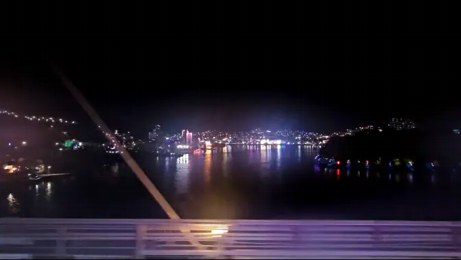 돌산대교 위를 지날 때에는 잠시 버스킹 공연을 멈추고, 버스 내부의 조명을 어둡게 해서 장범준의 여수밤바다 노래를 들려 줍니다. 여수 사람으로서는 이미 지겹도록 들은 노래이지만, 돌산대교 위를 지날 때 듣는 여수밤바다라는 노래는 가슴 한 켠을 왠지 아리게 하는 것 같습니다.