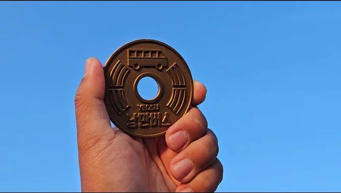 엽전을 기념품으로 주는 것인가 했는데, 버스에 탑승할 때 엽전을 반납해야 합니다.