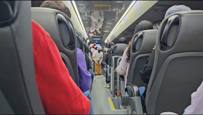 2층 버스를 타고 여행을 떠나게 되는데, 1층은 출연진들이 이용하는 공간이고 탑승객들은 2층 좌석을 이용해야 합니다.