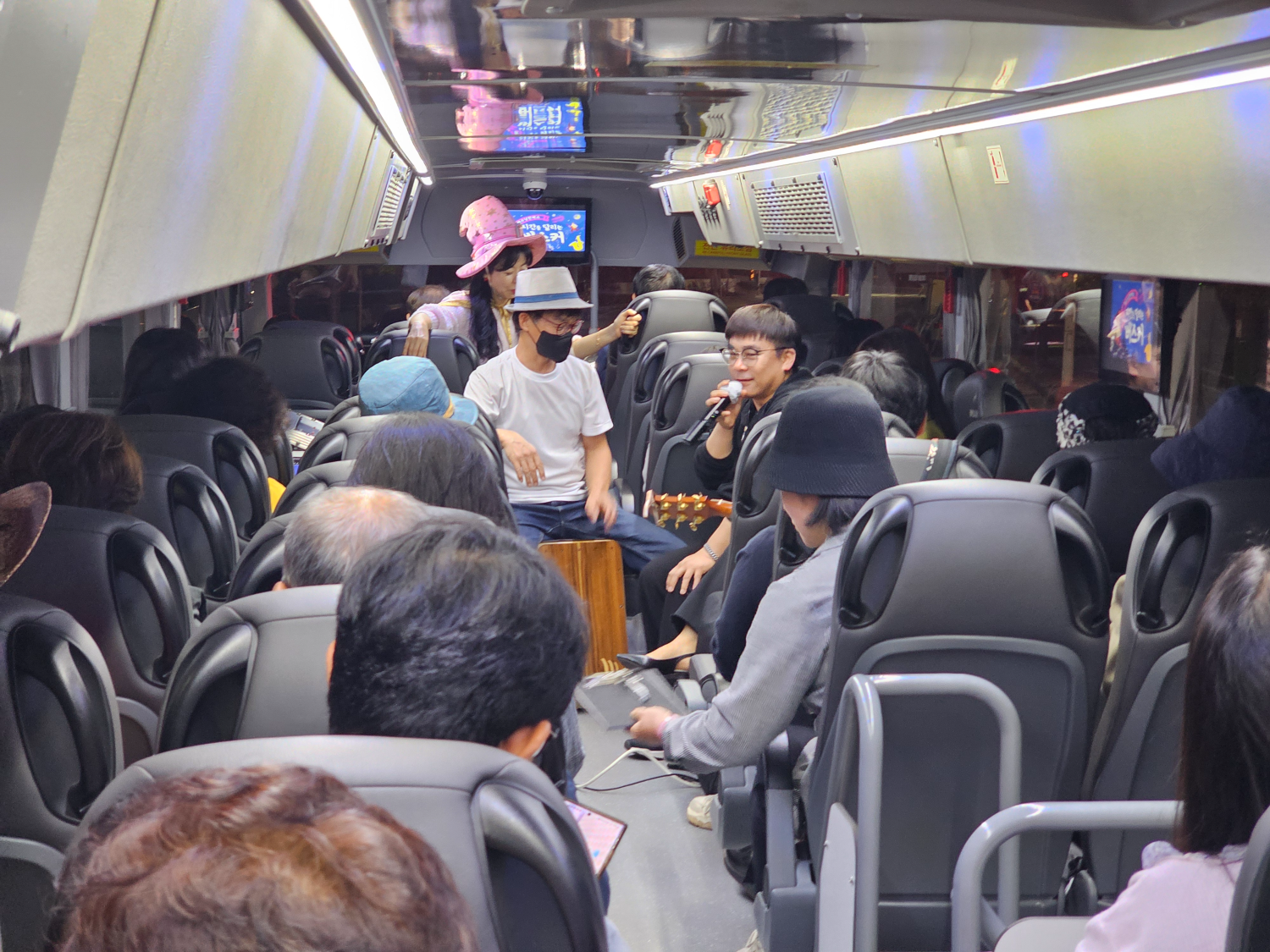 공연은 주로 버스 중앙에서 진행됩니다.