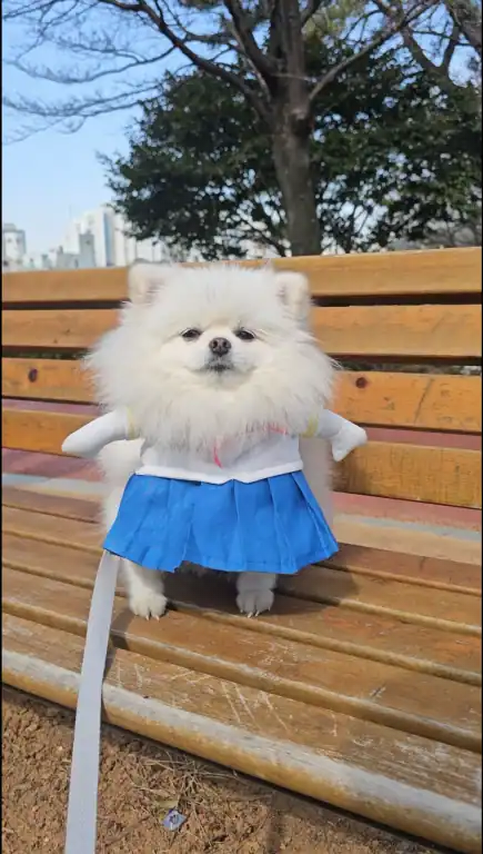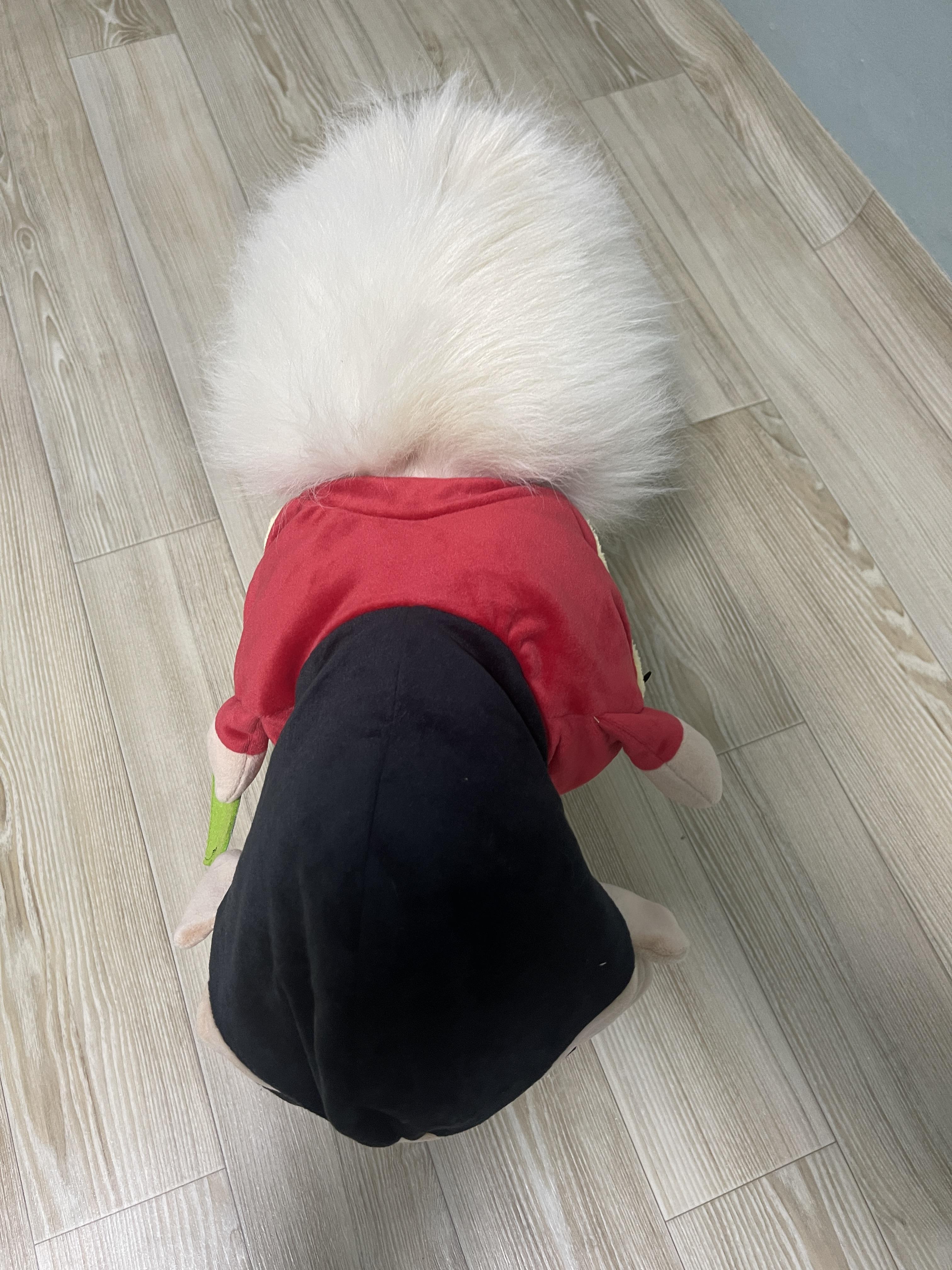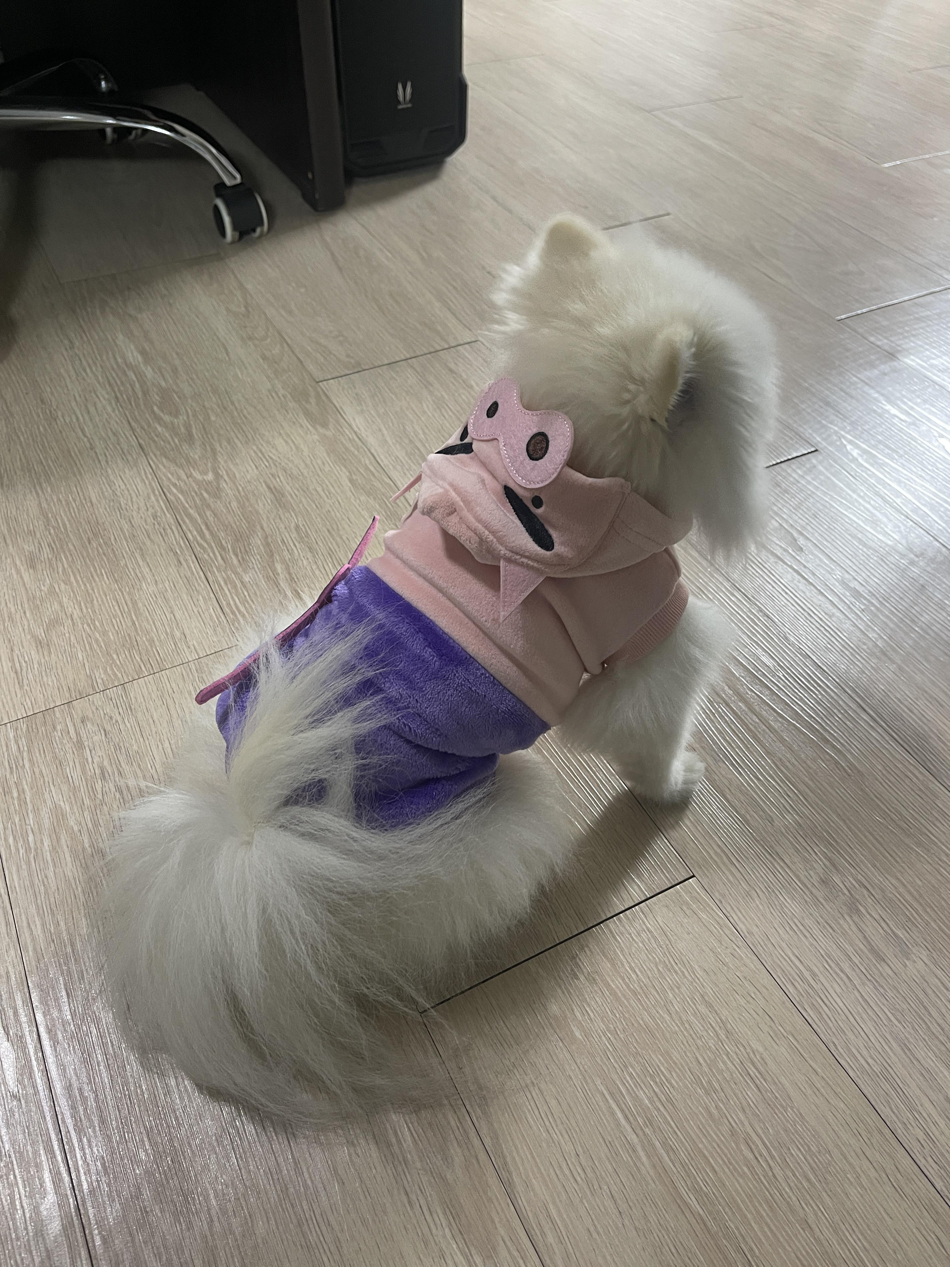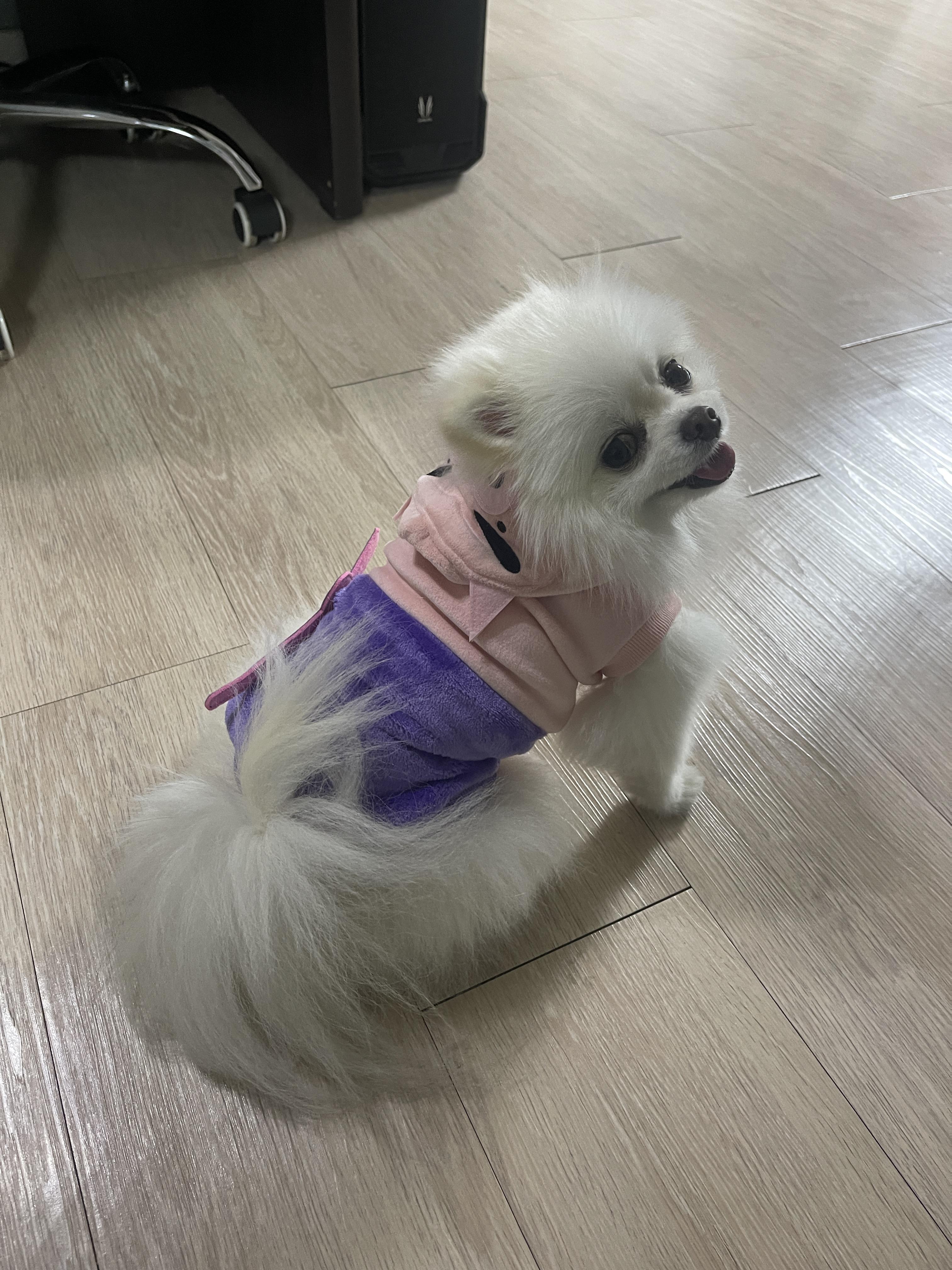 일본 여행을 가기 전에 엄마가 란(포메라니안, 수컷, 3세)이 옷 사이즈는 M이라고 알려줘서 M사이즈를 구입해 왔는데, 몸통은 맞지만 모자가 너무 큽니다.