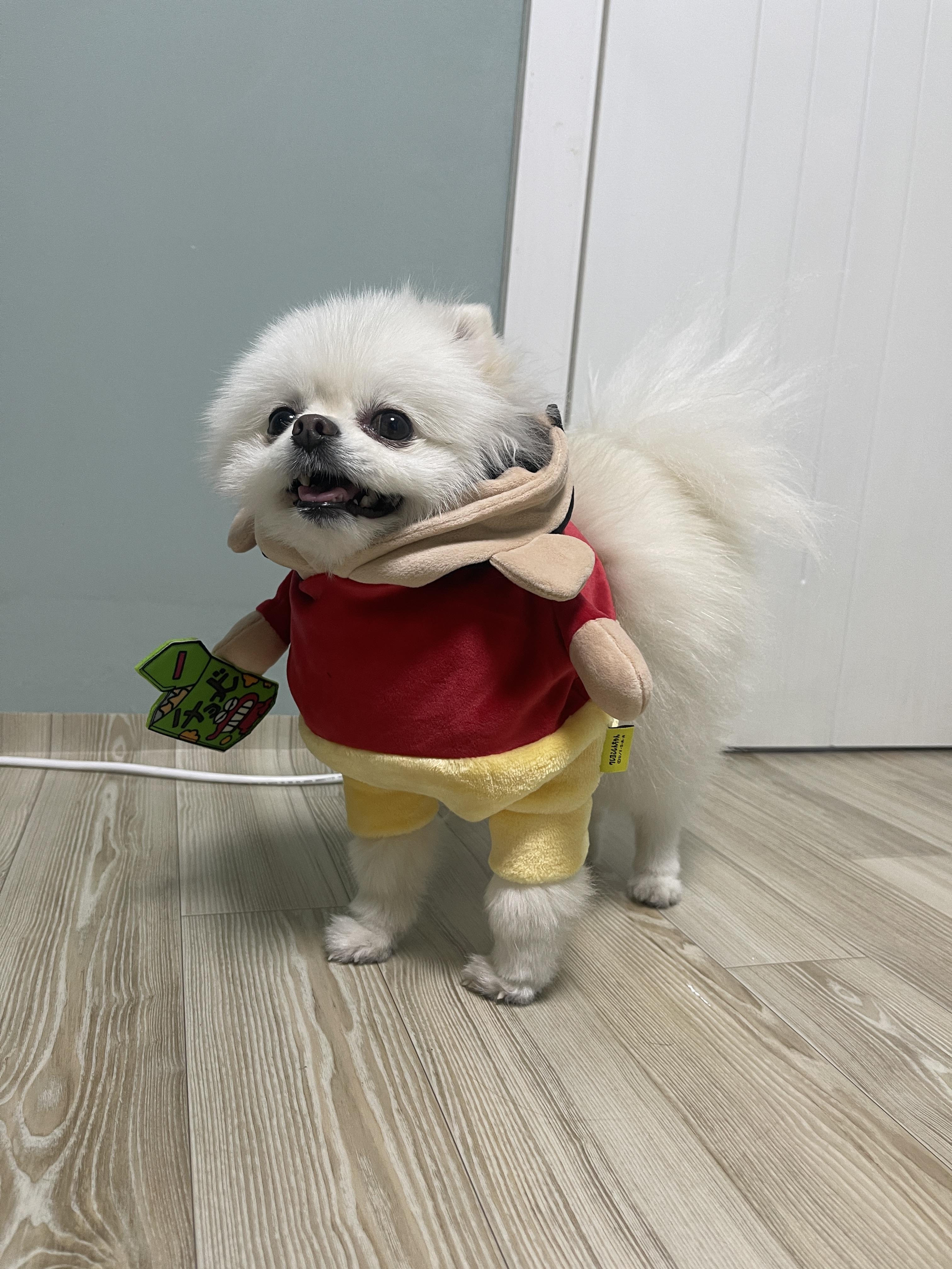 가장 먼저 강아지에게 입혀 볼 옷은 우메다 헵파이브 내 짱구 스토어에서 구입한 부리부리대마왕 의상입니다.