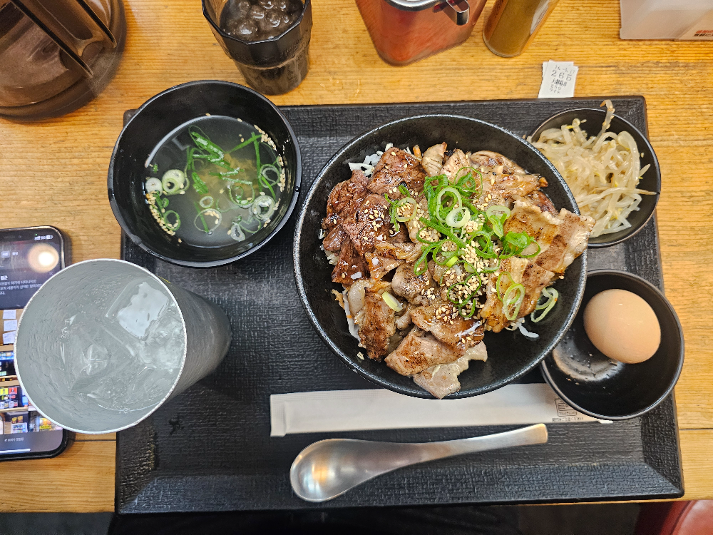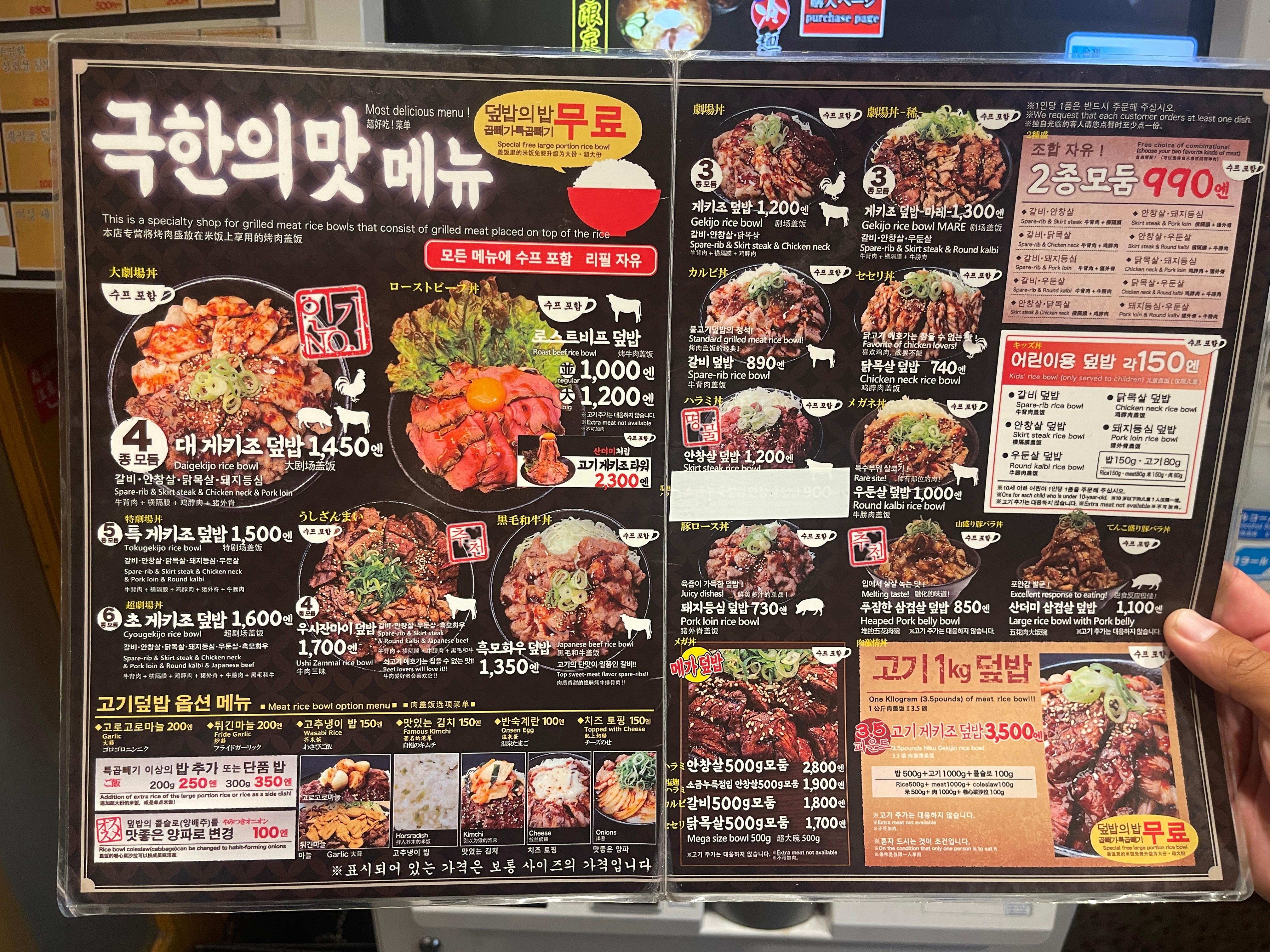 저는 4종의 고기(갈비/안창살/닭 목살/돼지 등심)가 포함된 대 게키조 덮밥(대극장 덮밥)을 선택했습니다.