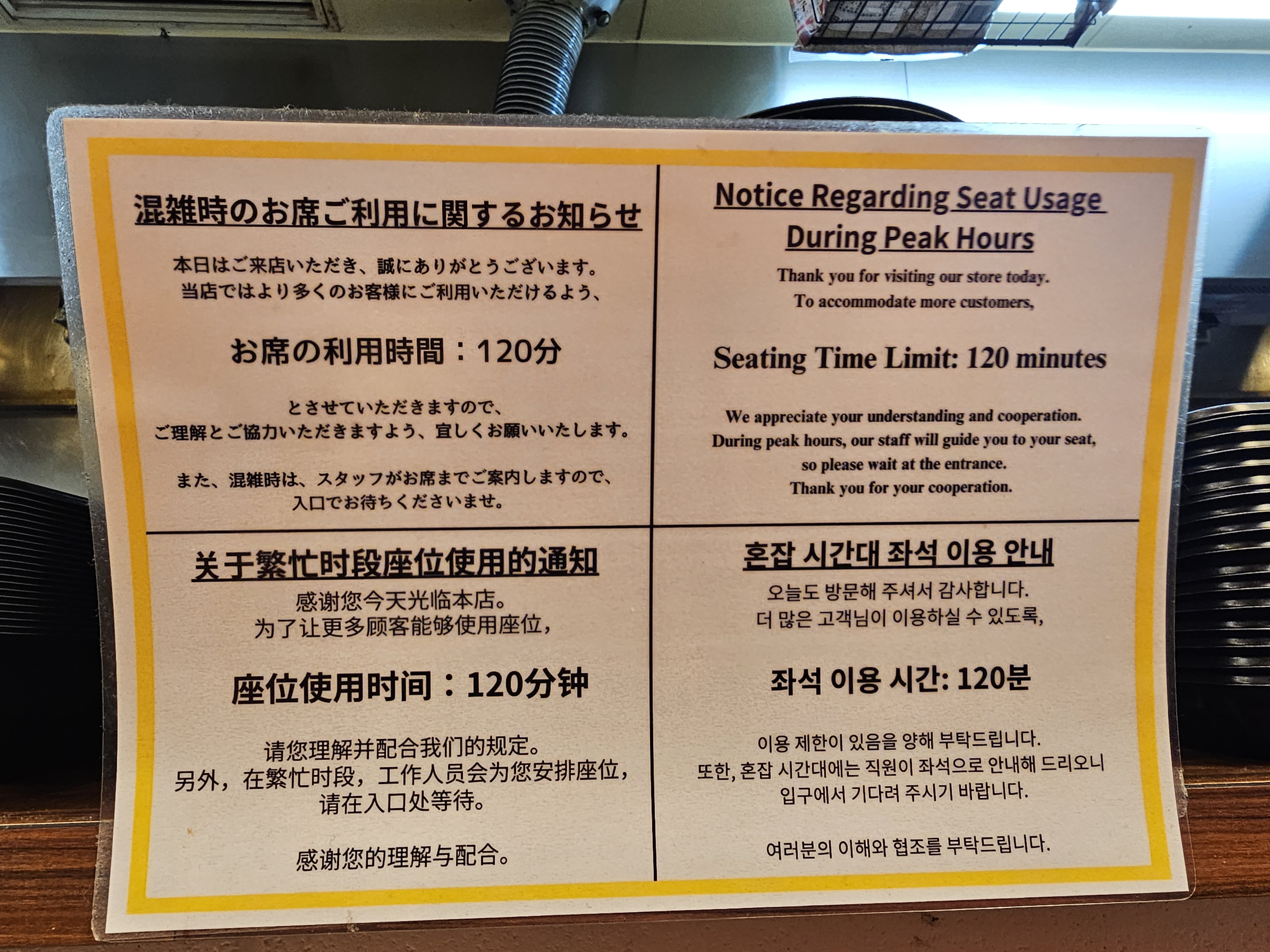 혼잡하지 않은 시간대에 방문했는데, 혼잡할 때에는 120분이라는 시간 제한이 있나 봅니다.