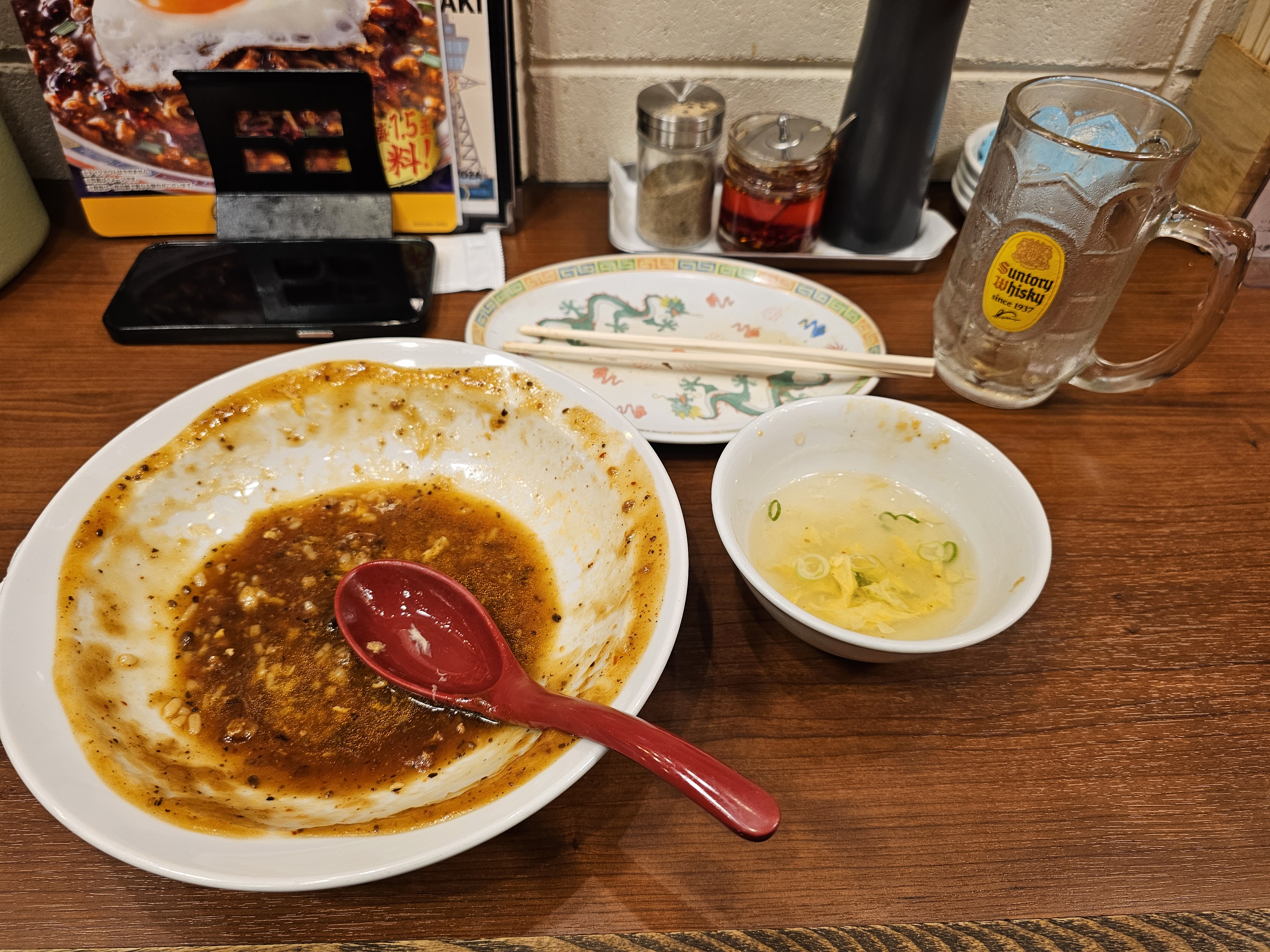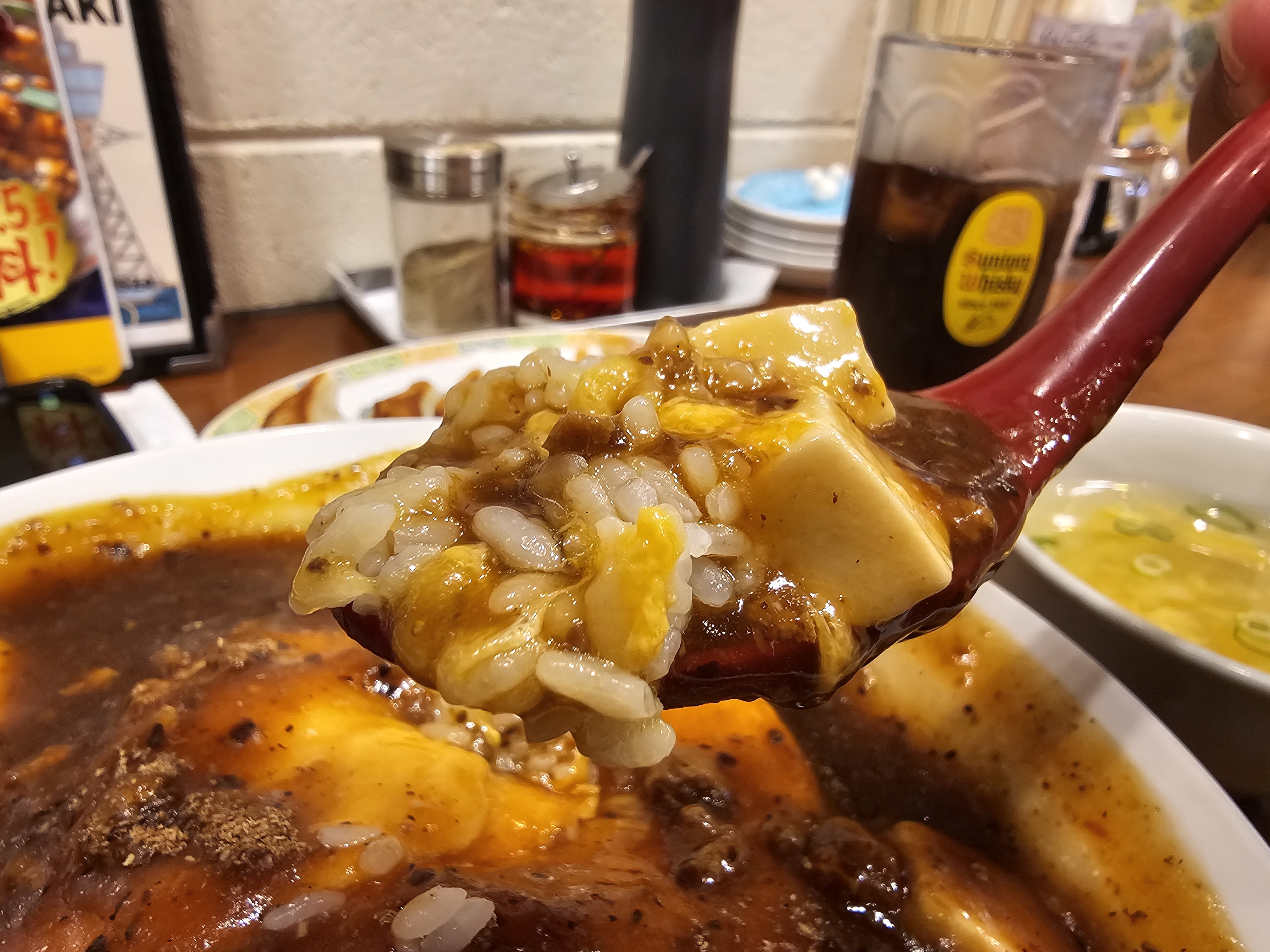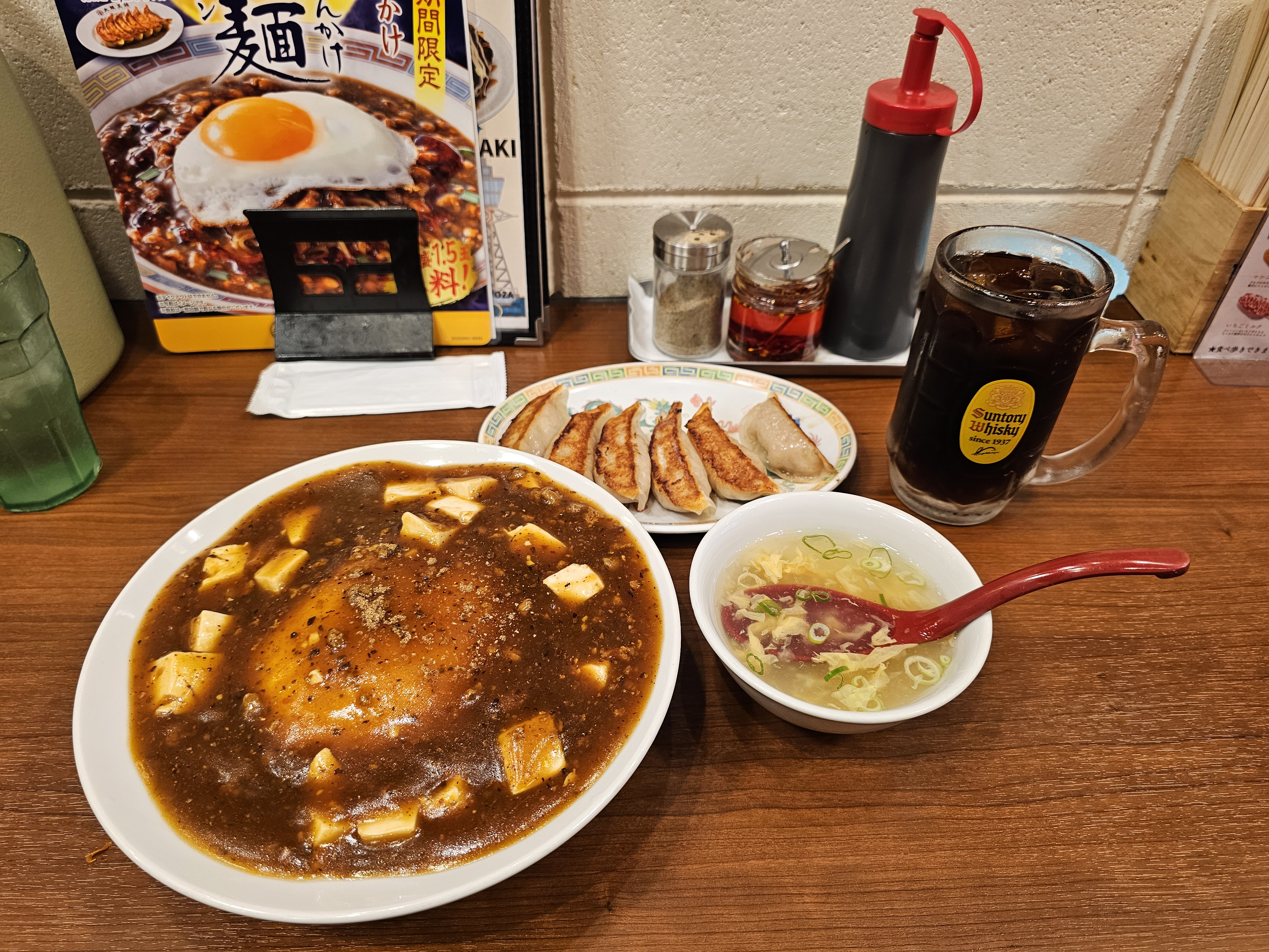 麻婆天津飯餃子セット. 메뉴판에는 말랑한 마파 덴신한이라는 괴상한 번역이 되어 있는 메뉴를 주문했습니다.