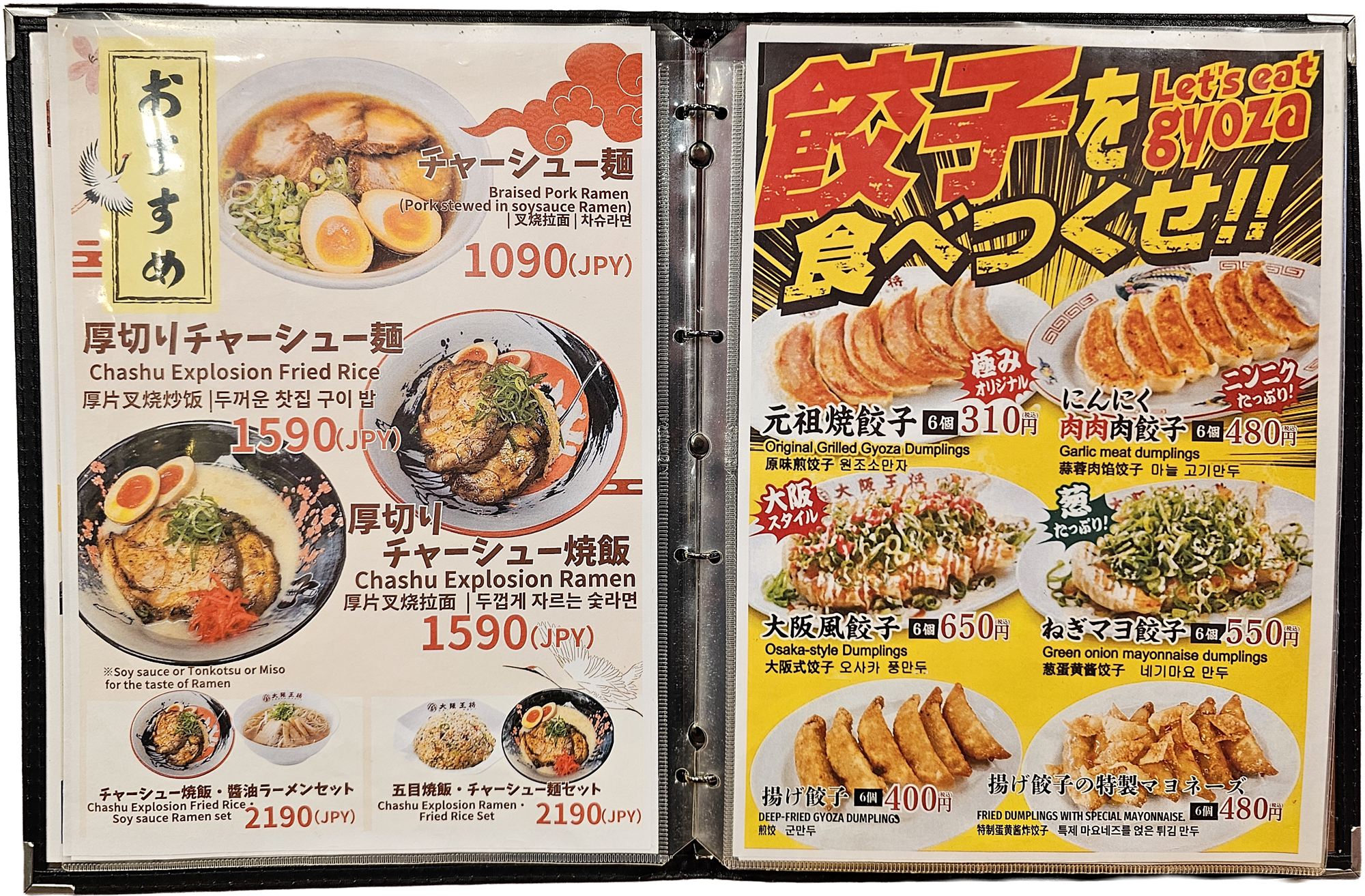 특히 오사카오쇼는 교자(餃子)가 대표 메뉴인데, “가성비 좋은 일본식 중화요리”라는 이미지로 널리 알려져 있습니다.