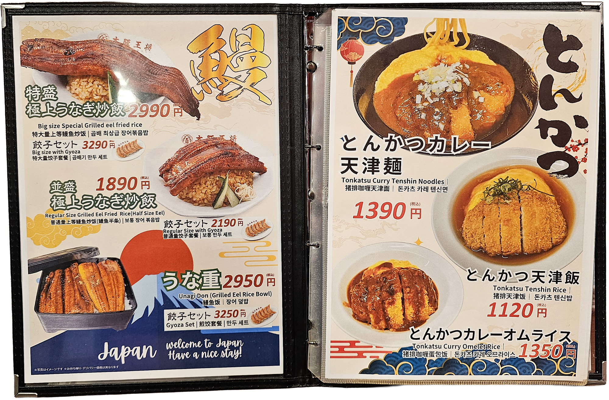 우리나라에서는 짜장면과 짬뽕, 탕수육이 중화요리의 대표 메뉴인데, 일본의 중화요리 전문점에서는 라멘과 볶음밥, 교자 만두가 대표 메뉴인 것 같습니다.