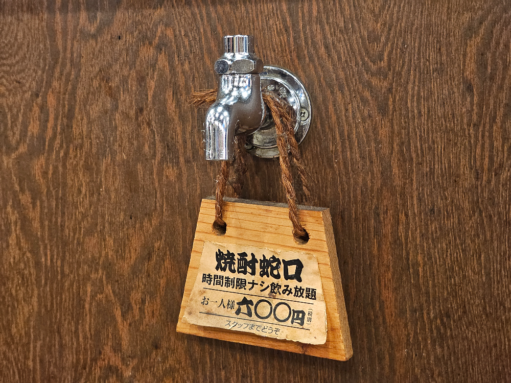 자리에 수도꼭지가 설치되어 있어서 대체 이게 뭘까 궁금했는데, 600엔을 내면 시간 제한 없이 일본 소주를 직접 따라 마실 수 있는 서비스였습니다.
