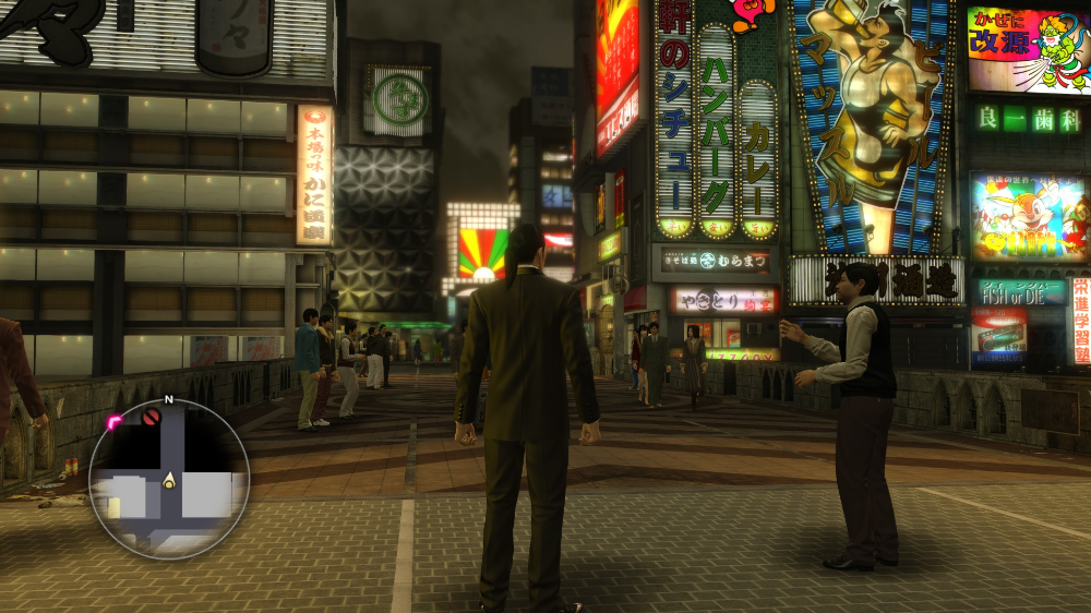 1988년의 도톤보리를 재현한 것이라 2025년 현재와는 약간 차이가 있지만, 오랜 시간 한 자리에서 영업을 하는 노포들이 많은 일본 특성상, 게임에서 등장한 몇 몇 가게들이 현재까지도 영업하는 모습을 볼 수 있습니다.