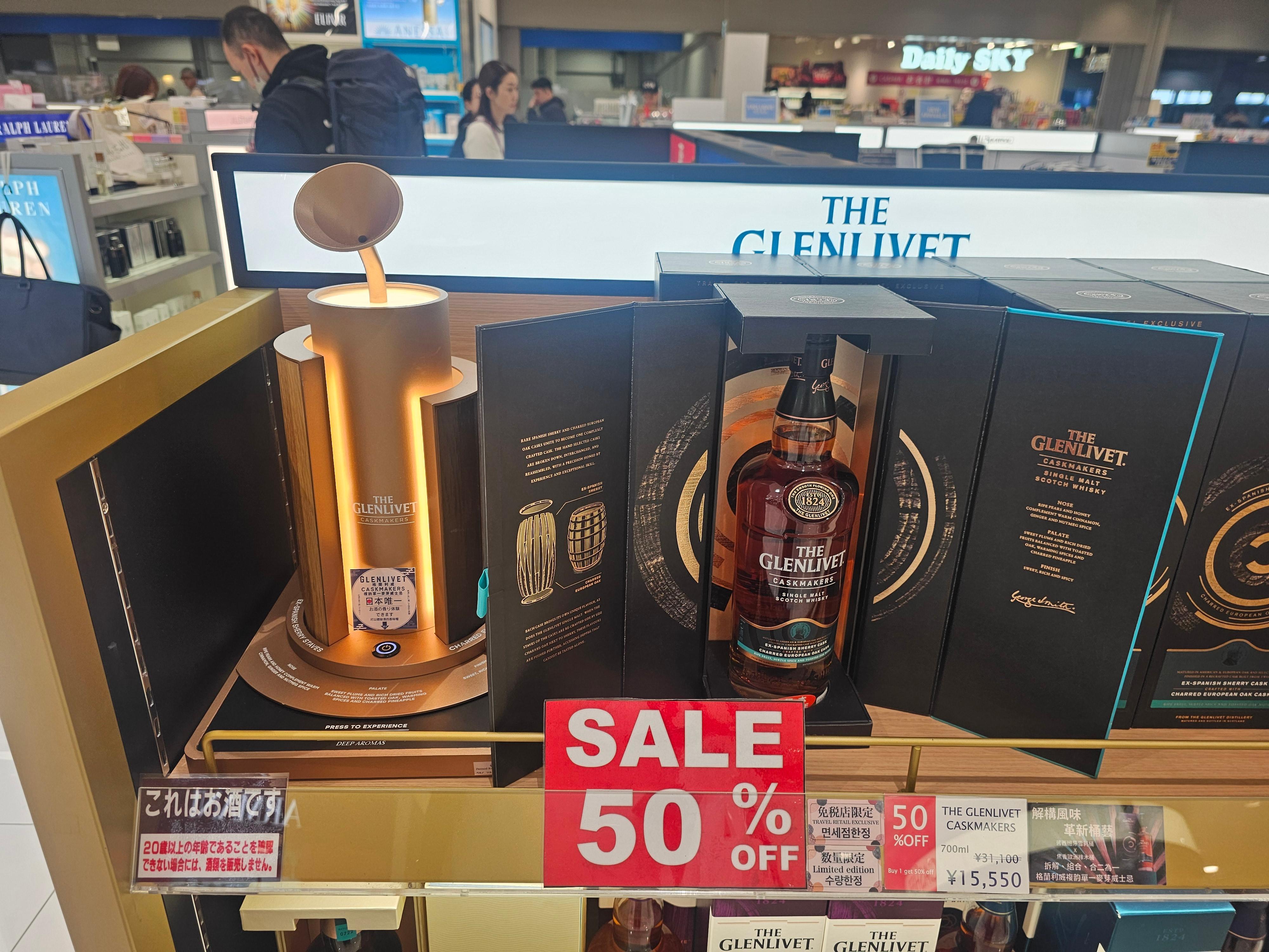 오사카 간사이 국제공항 2터미널 면세점을 지나던 중, 『50% SALE』이라는 팻말이 눈에 들어왔습니다.