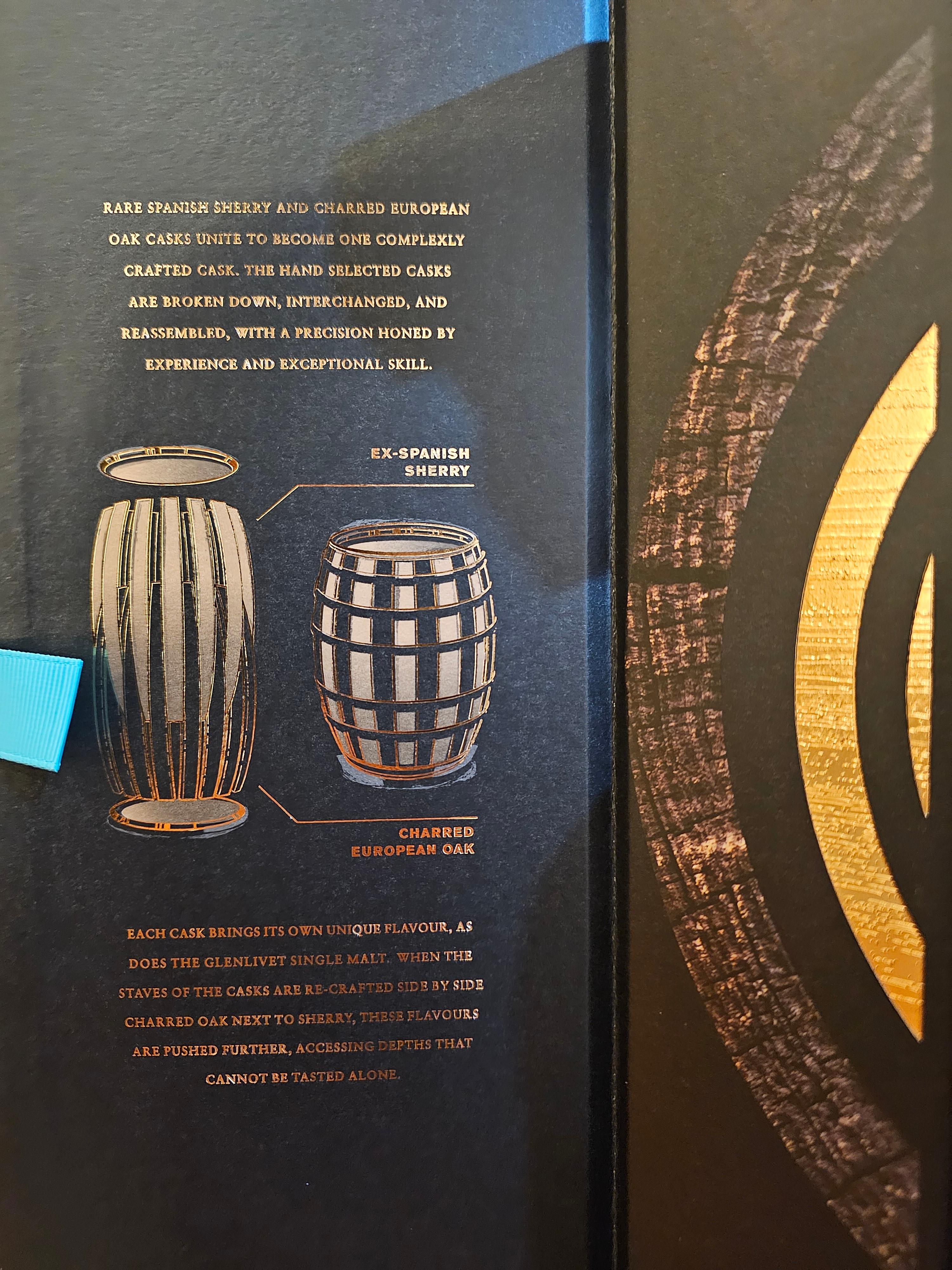 마스터 쿠퍼의 높은 기술력으로 선택된 최고급 퍼스트 필 아메리칸 오크 & 프렌치 오크 차드 캐스크를 바탕으로, 오크 스테이브(널판)를 하나하나 분해한 뒤 서로 다른 오크 목재를 교차 배치해 재조합했습니다. 그리고 이 재구성된 캐스크에서 숙성 마무리를 하면서 글렌리벳 특유의 과일 풍미에 새로운 깊이를 더했습니다.