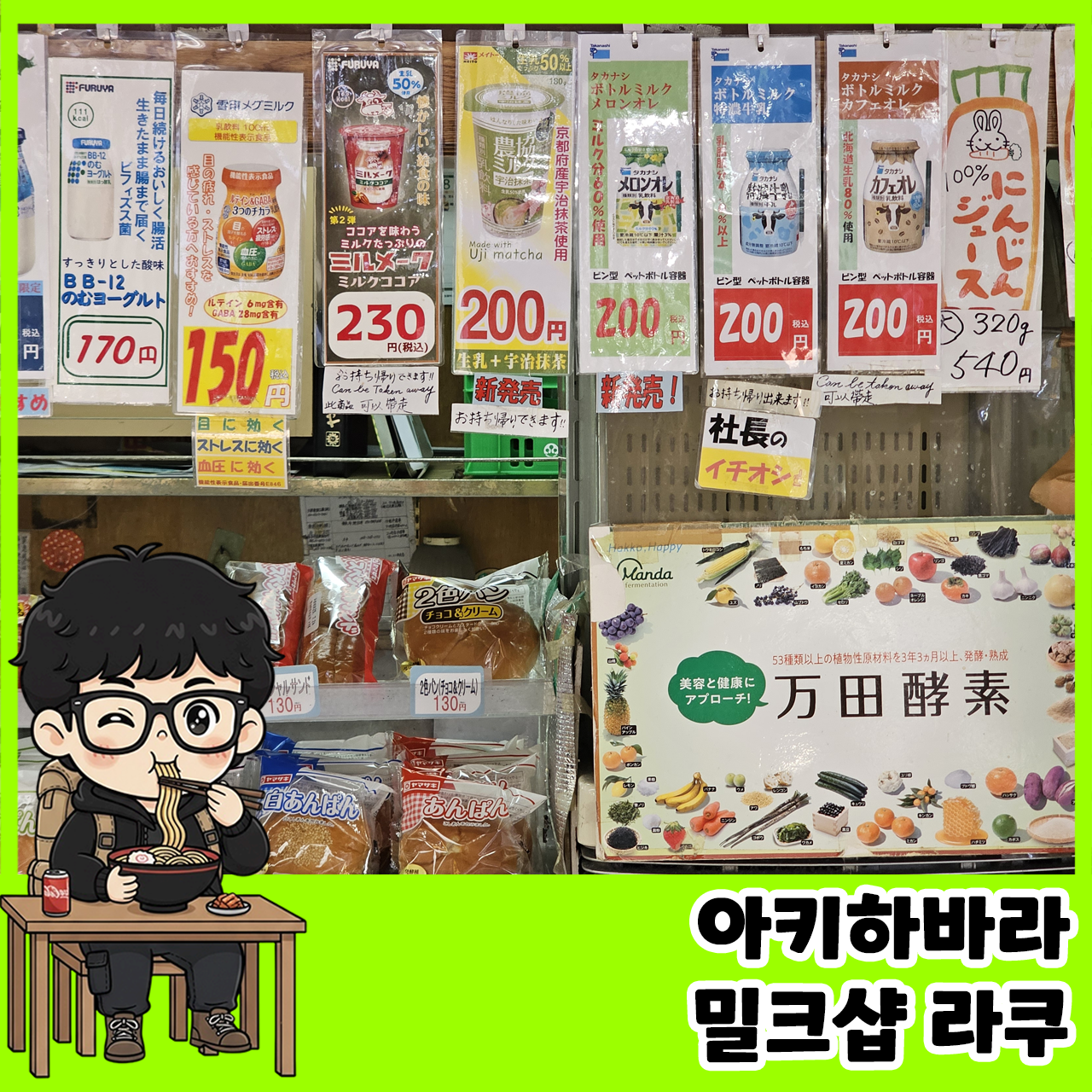 밀크샵 라쿠(ミルクショップ ラック, Milk Shop LUCK)는 JR 아키하바라역 플랫폼에 위치한 작은 우유 전문점입니다.
