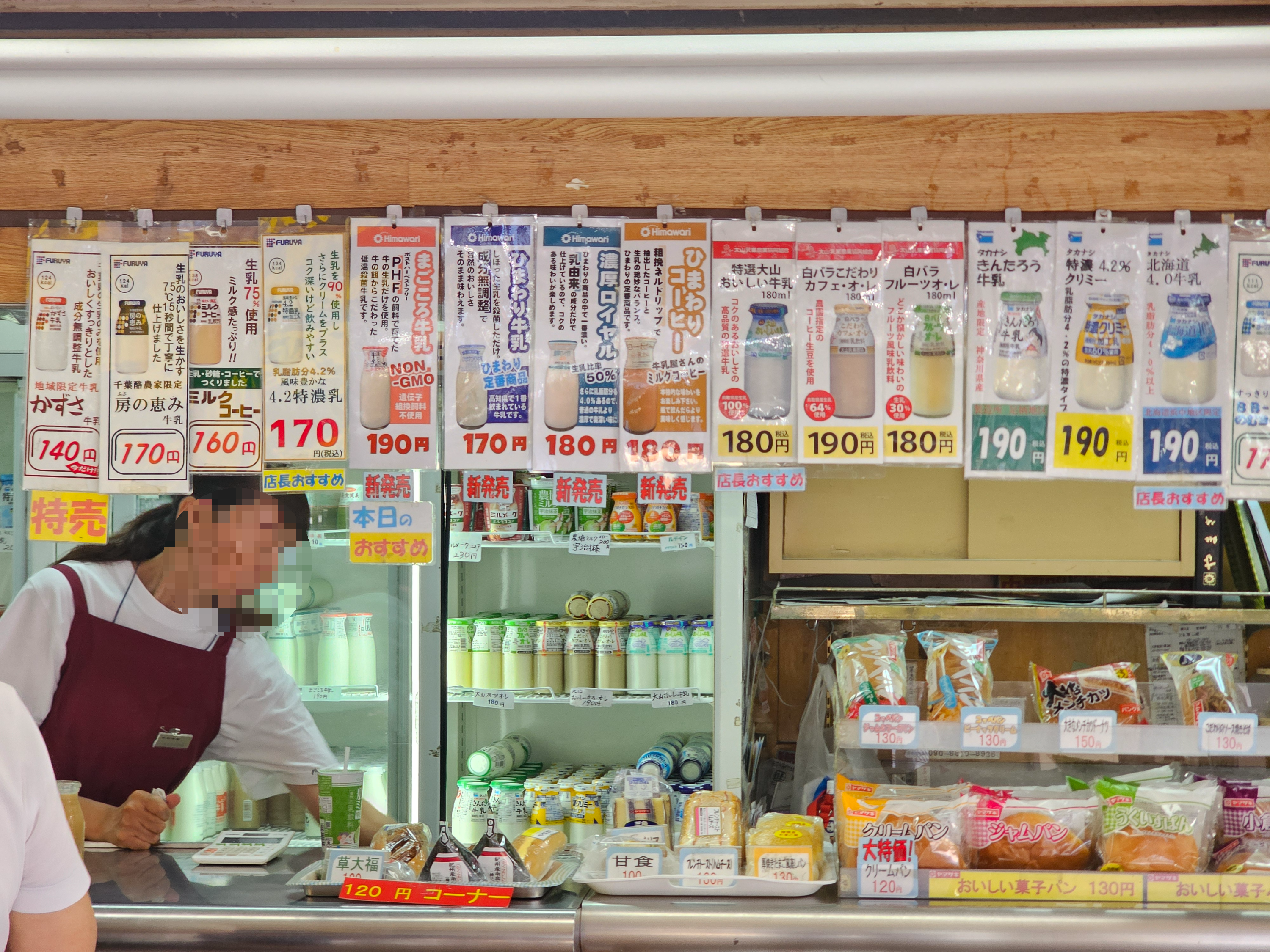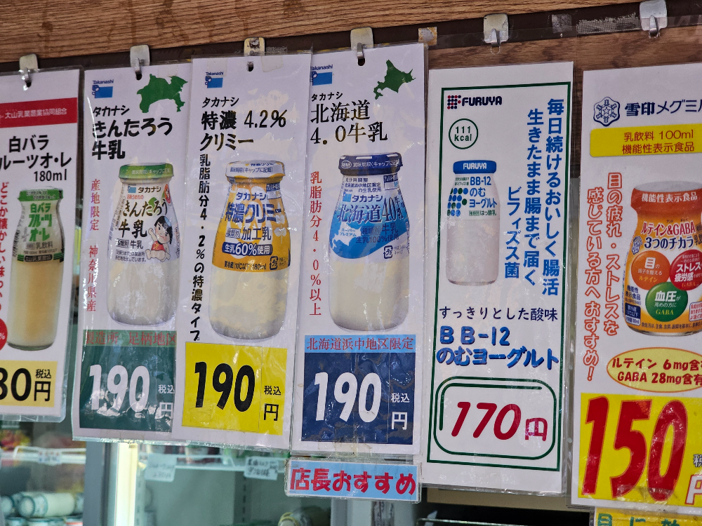 일본어를 잘 모르지만, 얼핏 붙여진 제품 홍보 문구들을 봤을 때 일본 전역의 우유가 이 곳에서 판매되는 것 같습니다.